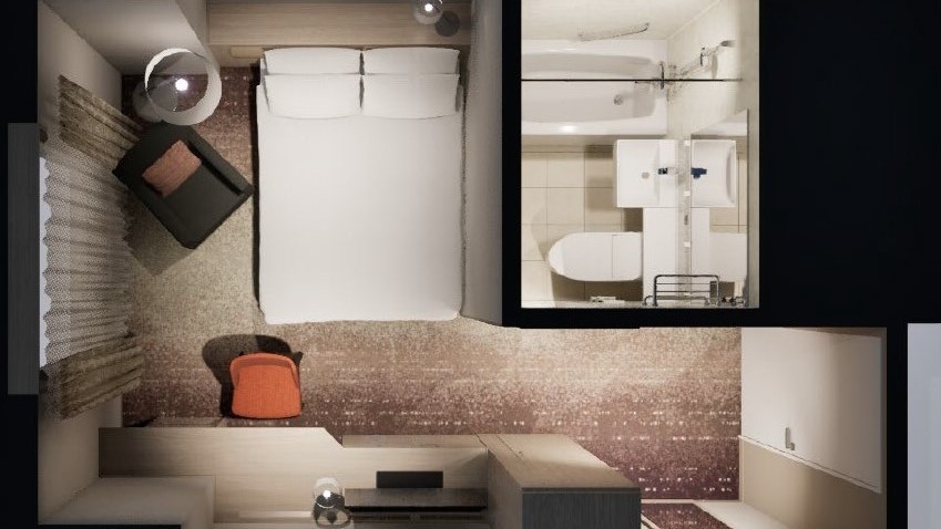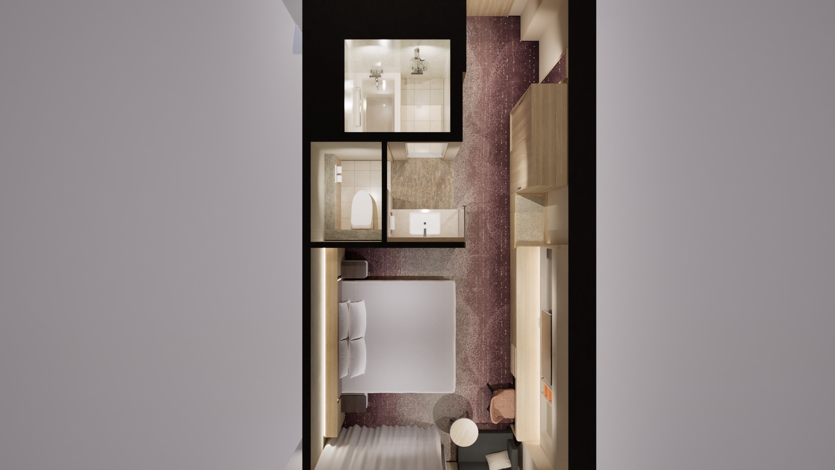 2025年9月に水回りをバス・トイレ別のお部屋に全面リニューアル。 シモンズ社のベッドを3台配置。