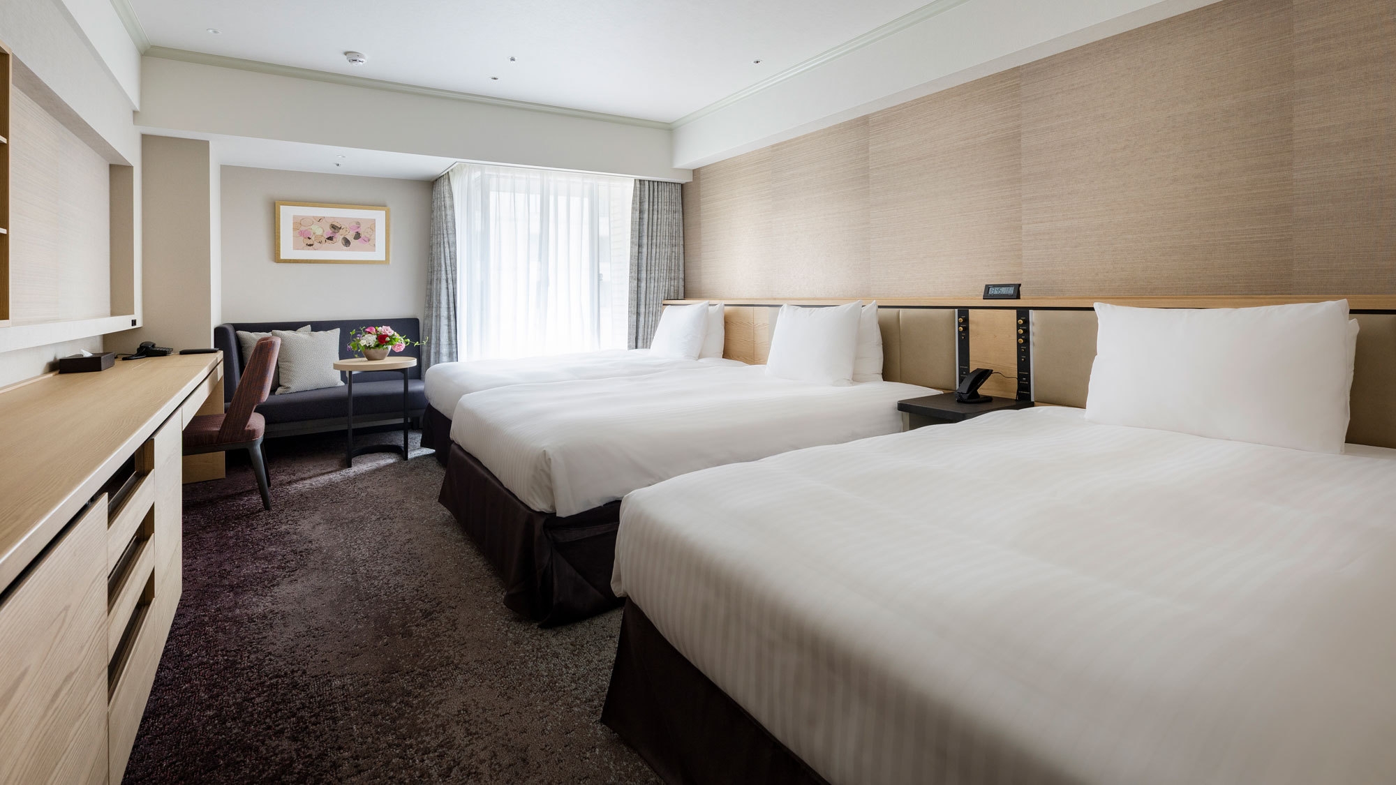 【広さ35平米・ベッドサイズ120x200】快眠をお約束する米国シモンズ社製のベッドを3台ご用意しました。 ファミリーや女性同士のご滞在に人気です。