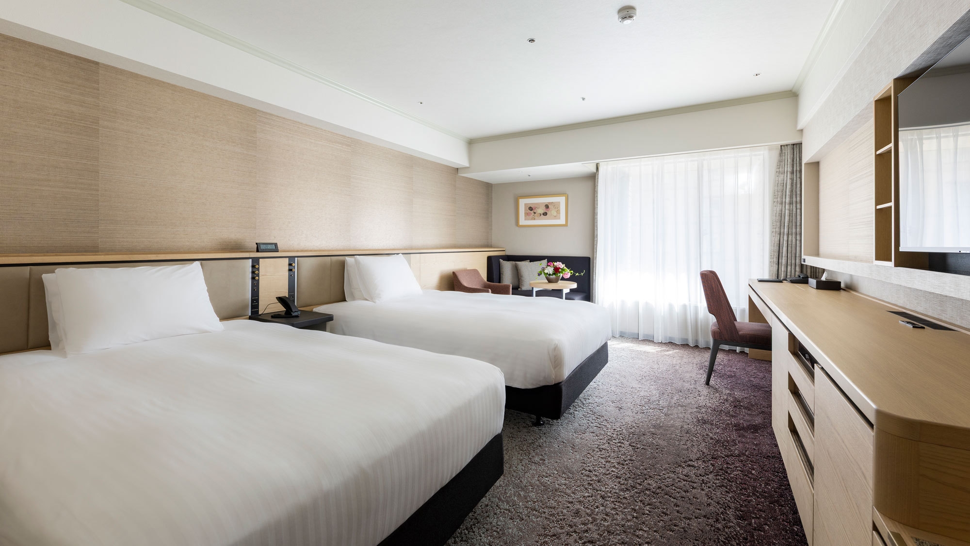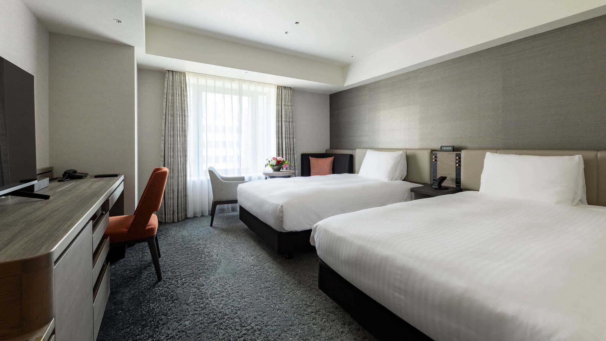 【広さ35平米・ベッドサイズ120x200】2台のベッドを寄せて並べたハリウッドスタイルのお部屋です。