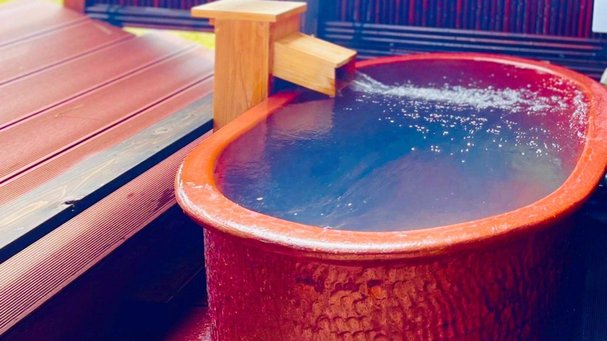 この庭園を眺めながら入れるこの部屋専用の露天風呂は、大浴場と同じ100%源泉かけ流しです。