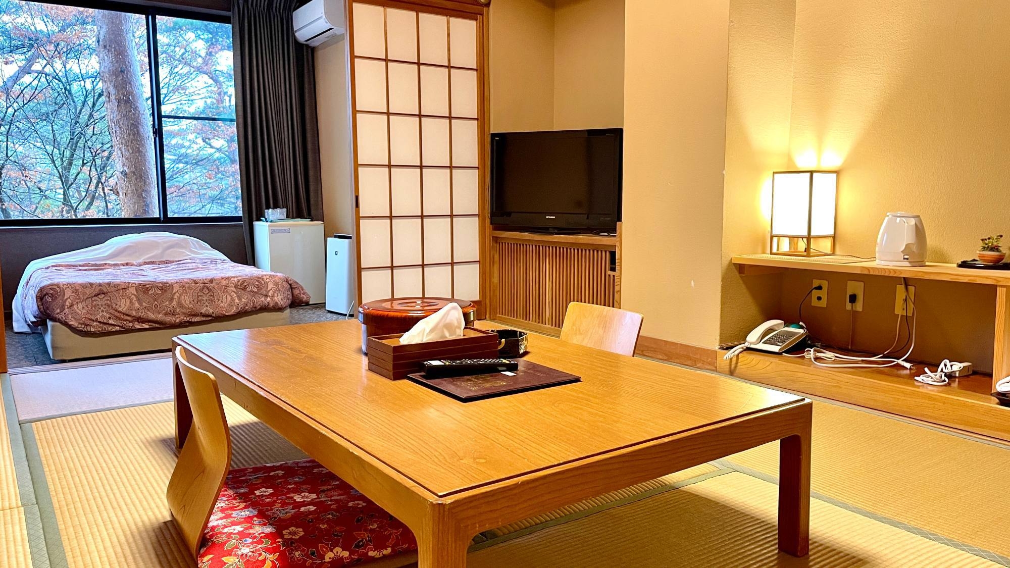 那須岳・大佐飛山・女峰山・男体山・高原山の五峰が一望できる和室。布団タイプとベッドタイプがございます。寝具のご指定はできかねますのであらかじめご了承ください。