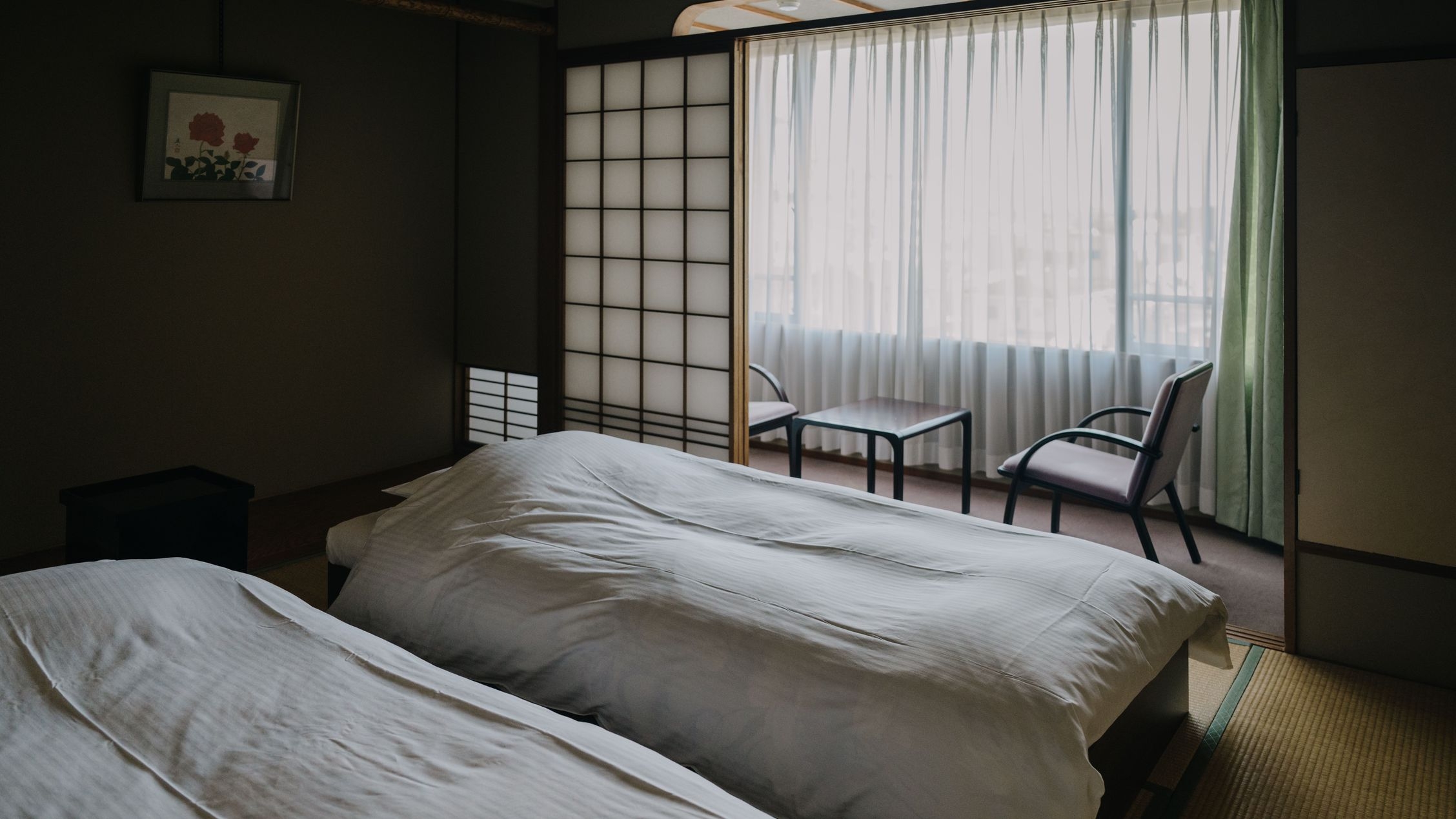 【禁煙】貴賓室は【本間(11畳)+副間(8畳)+広縁】の副間付和室に【ダブル】のベッドルームが付いたお部屋 無料Wi-FI完備