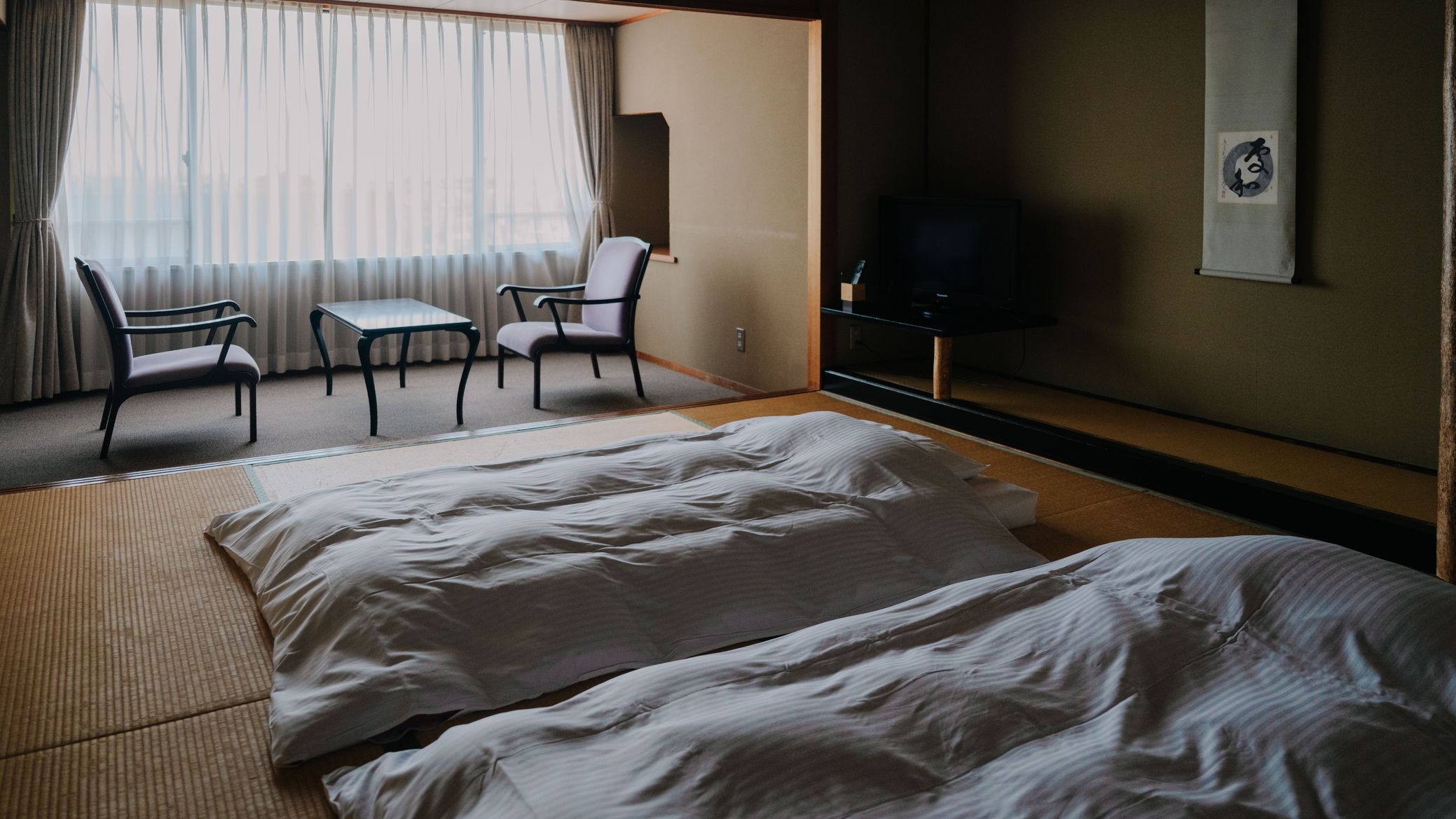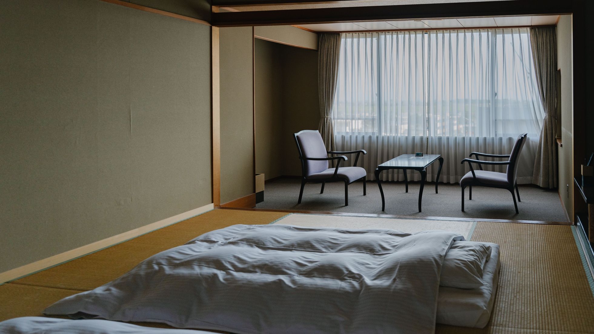 【禁煙】貴賓室は【本間(11畳)+副間(8畳)+広縁】の副間付和室に【ダブル】のベッドルームが付いたお部屋 無料Wi-FI完備