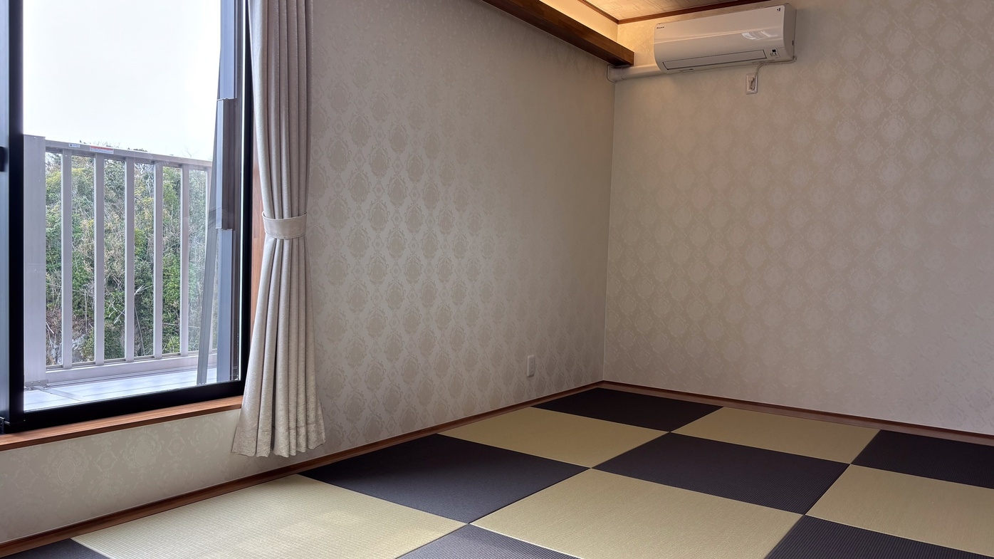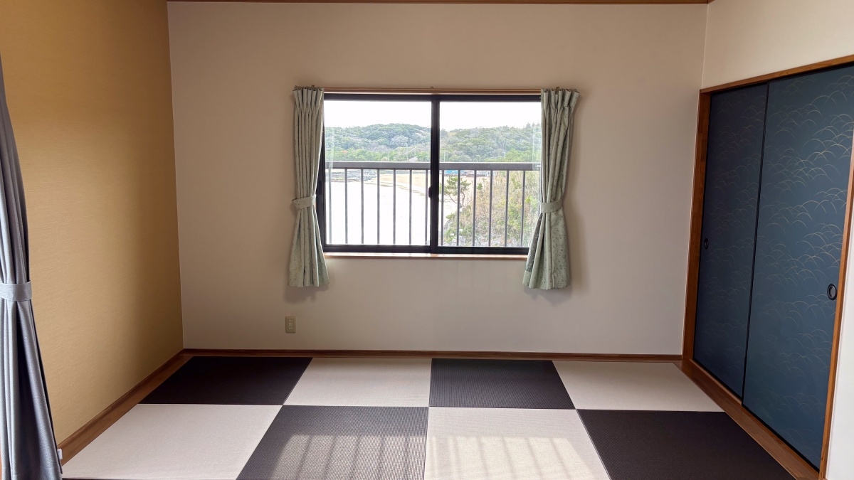 玄界灘の雄大な眺めを一望できる和室です。2〜6名利用。洗面所完備★ ※お布団敷きセルフ