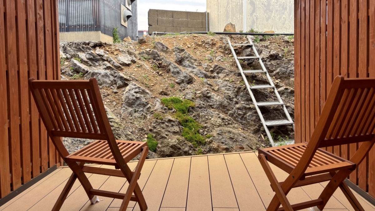★2025年春オープン!★ 飛び出すような形のテラスが付いた、玄界灘の雄大な眺めを一望できる新客室!バス・洗浄機付トイレ・洗面所・冷蔵庫完備。お布団敷セルフ。