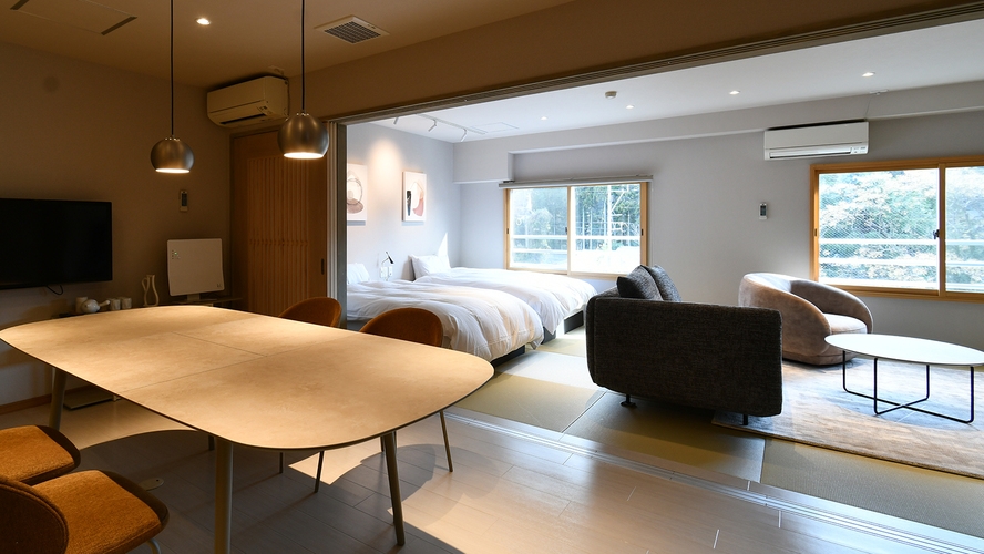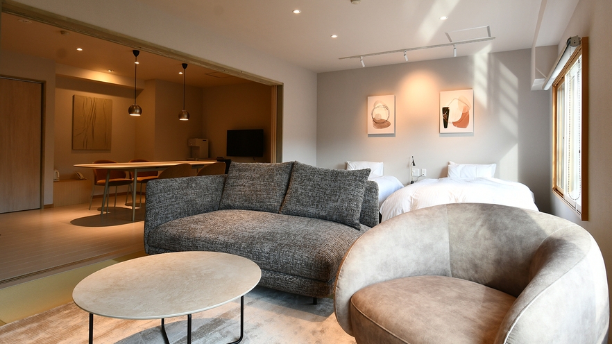 【禁煙ルーム】 待望の展望半露天風呂付き客室です インテリアショップBoConceptがセレクトした素敵な家具が並ぶ モダンでスタイ