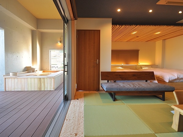 【禁煙ルーム】 ※テラスでの喫煙は可能です 待望の展望半露天風呂付き客室です※3名〜はお布団となります