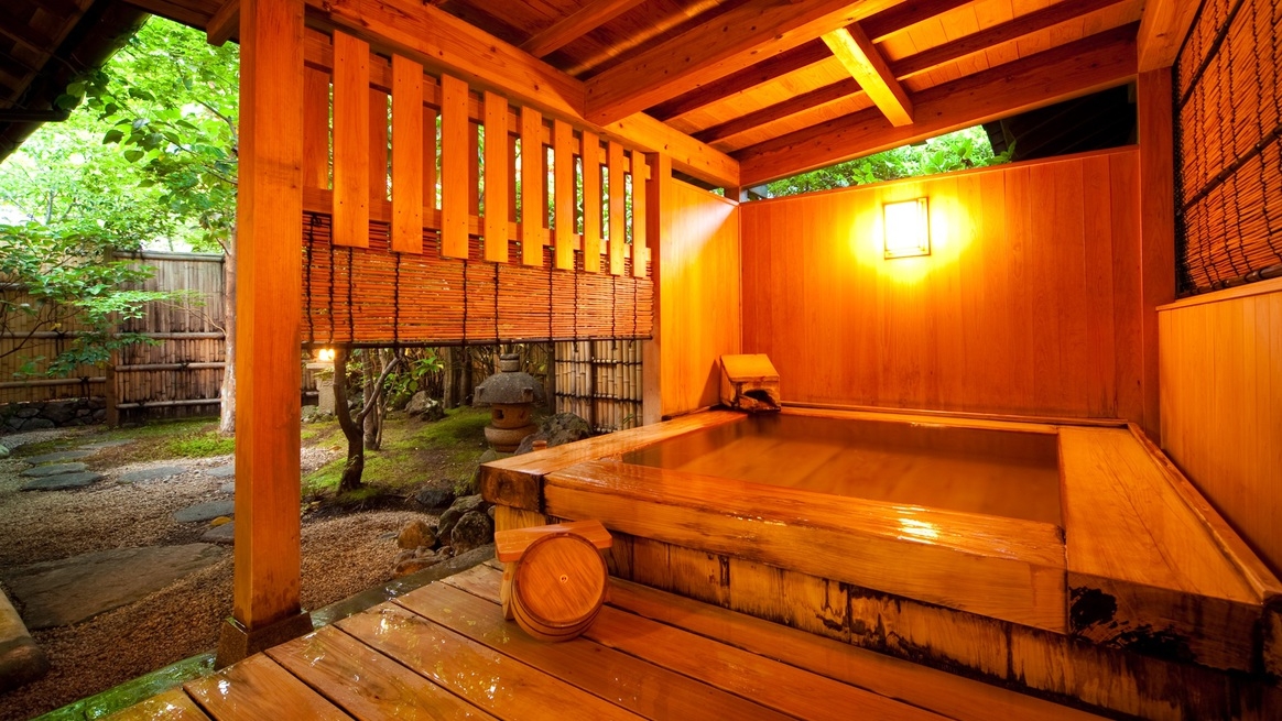 ゆったりとした内風呂と露天風呂に 専用の庭を望むことができる広縁付。