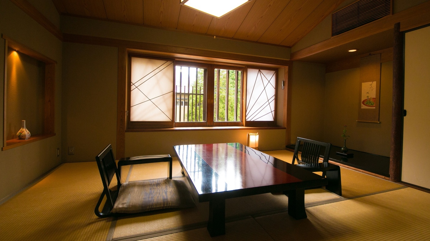 純和風数寄屋造りの落ち着いた客室。バス(温泉)・ウォシュレットトイレ付。 (お子様のご利用不可)