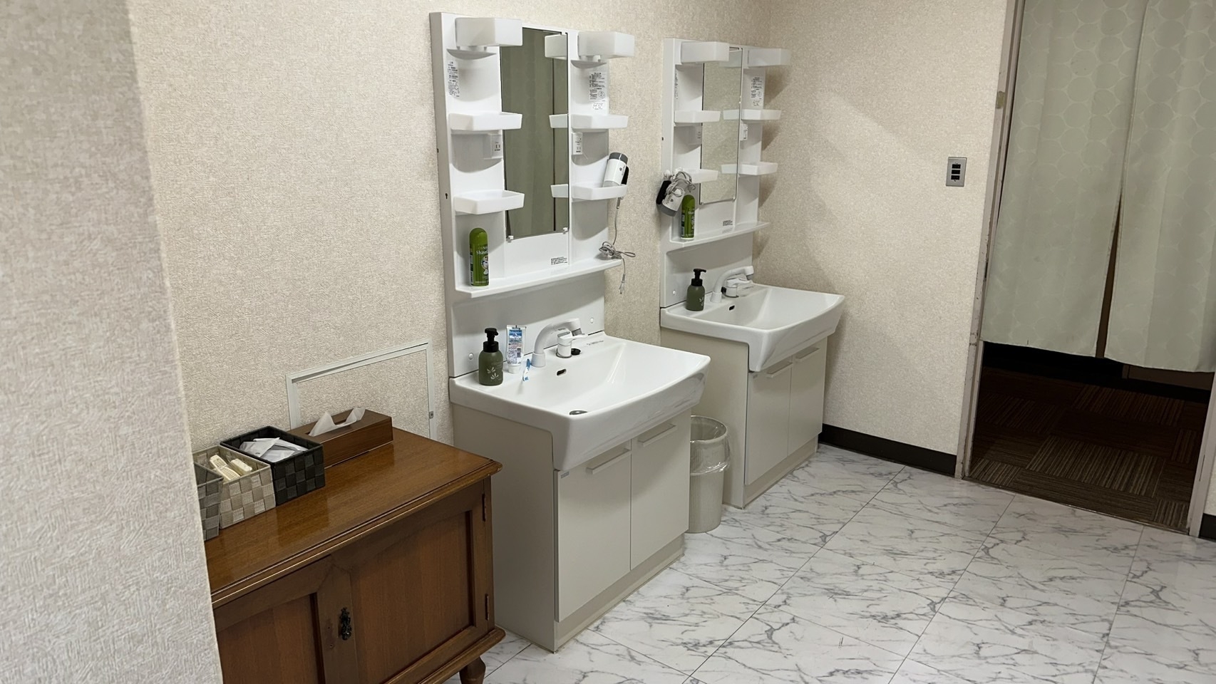 キャビン入口のアコーディオンカーテンを閉めきることにより、シティーホテルのシングルルームを思わせる個室空間となります。