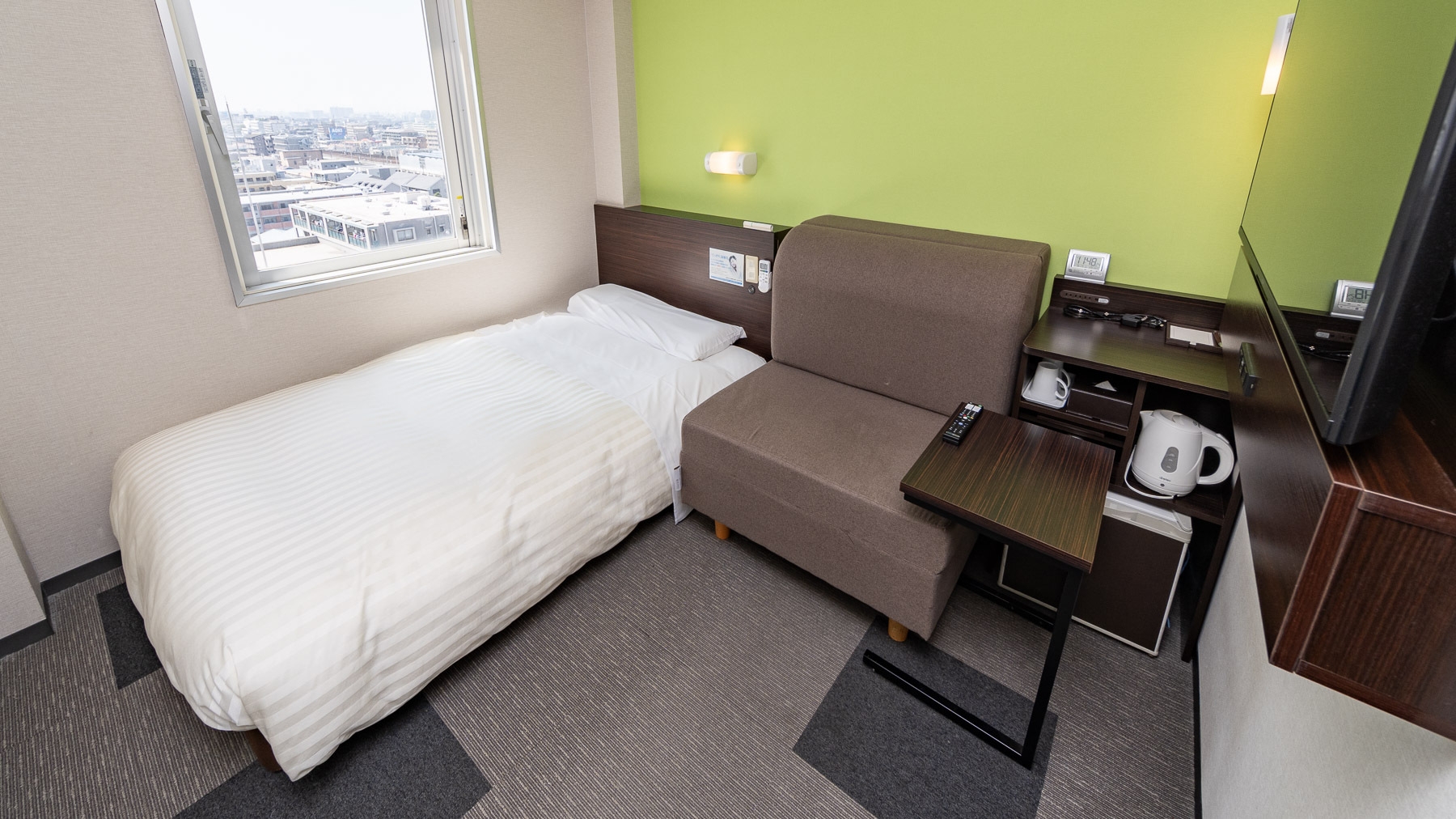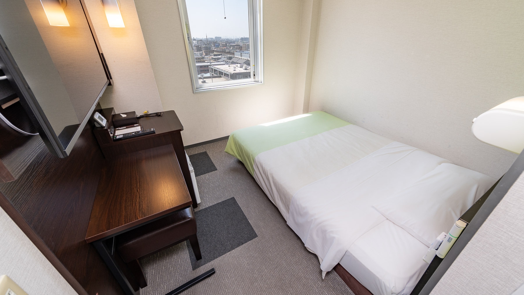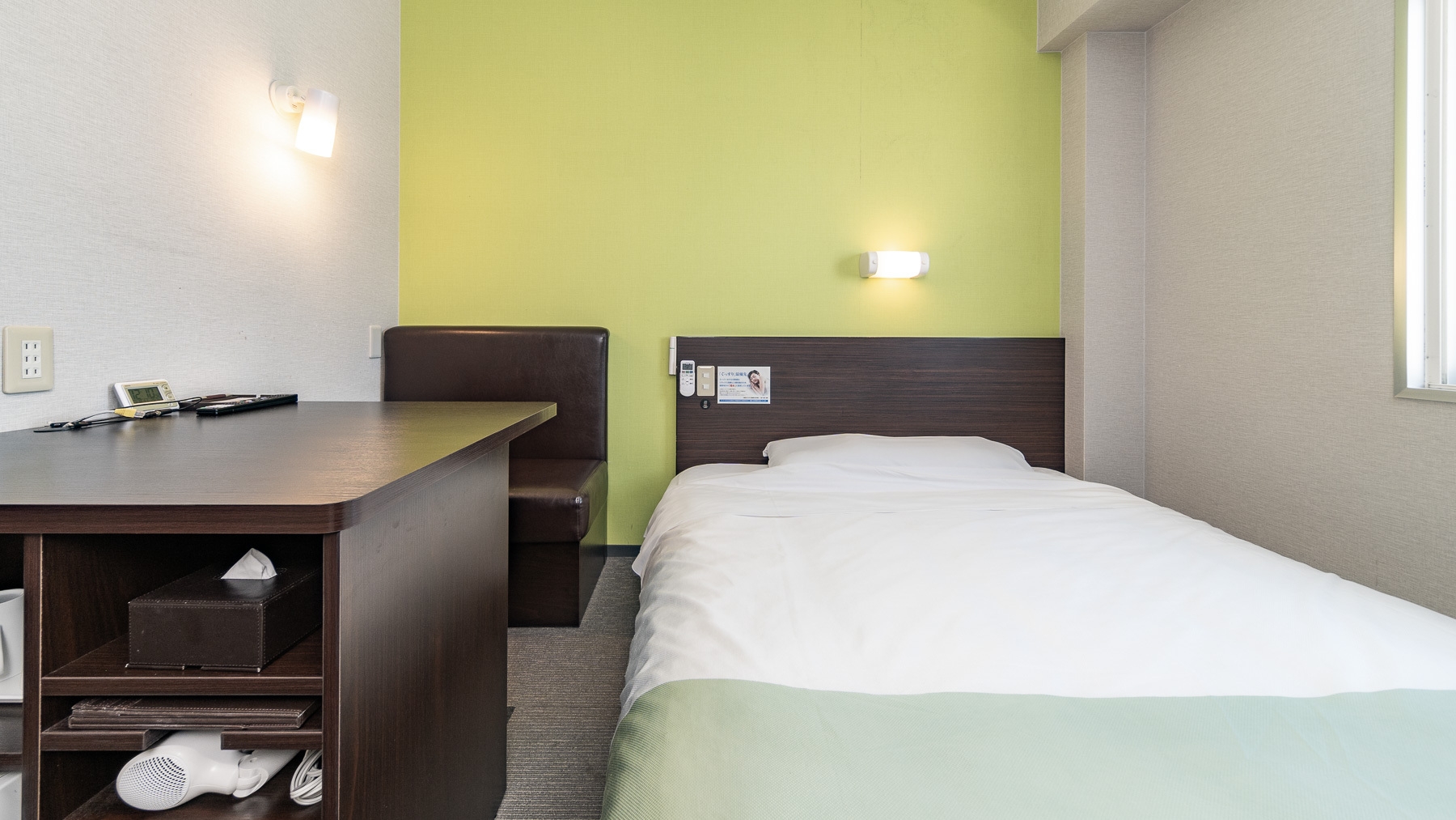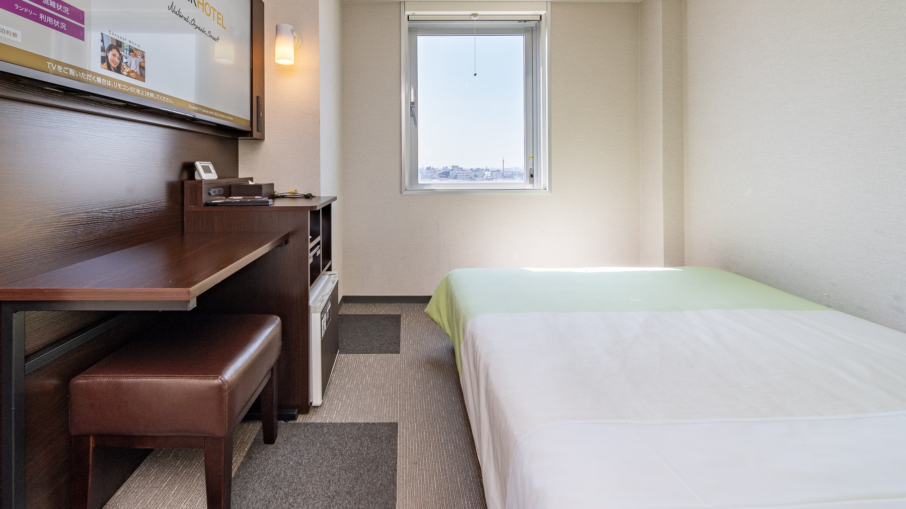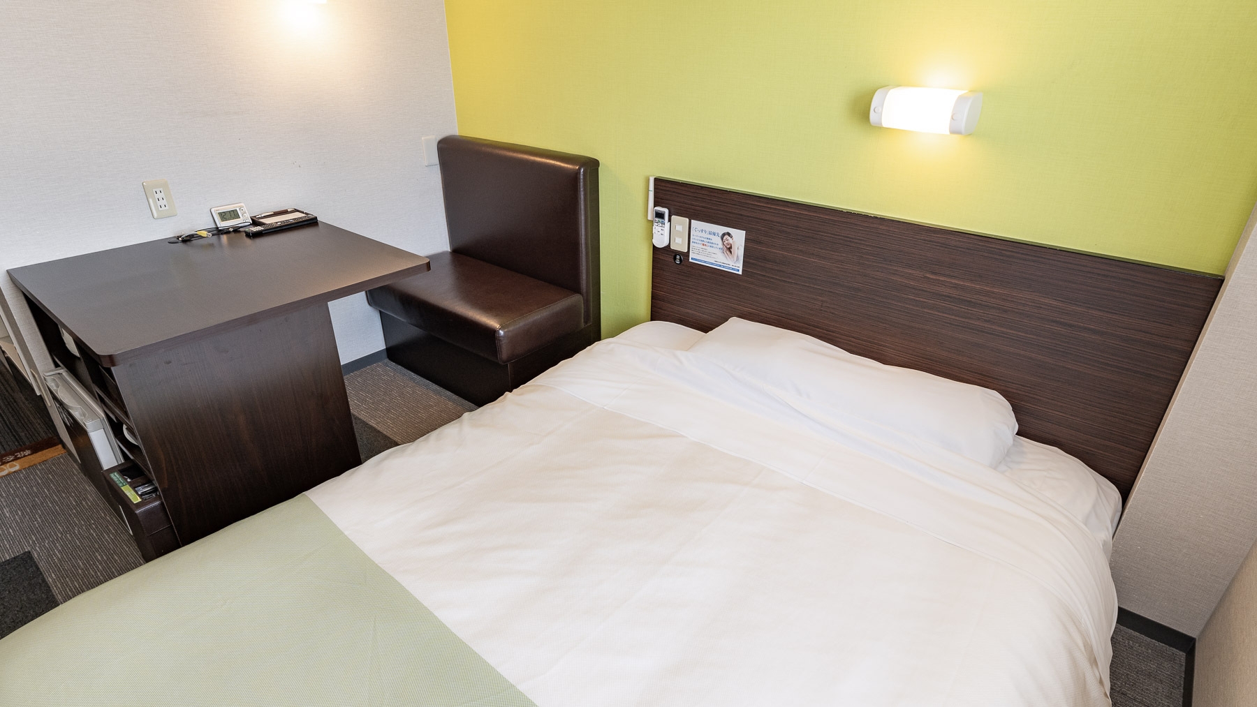 150cm幅のワイドベッド+広々デスクの【エクストラルーム】です。広々デスクで仕事や作業がしやすいお部屋です。