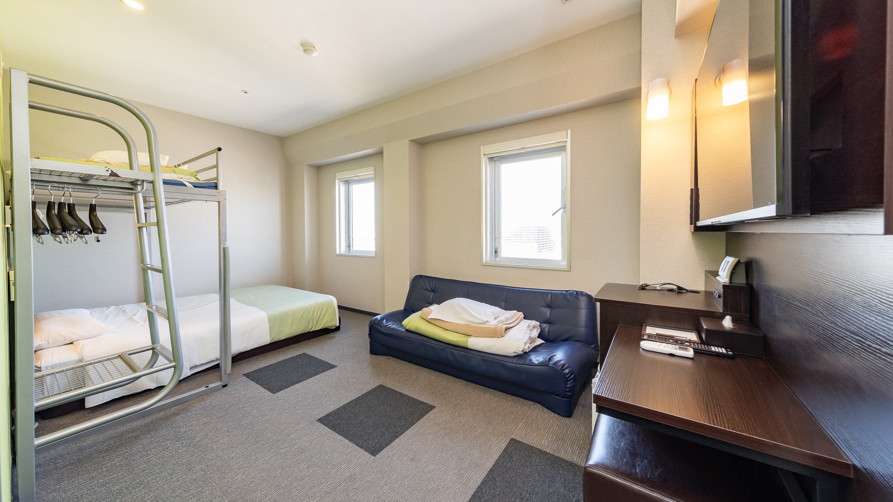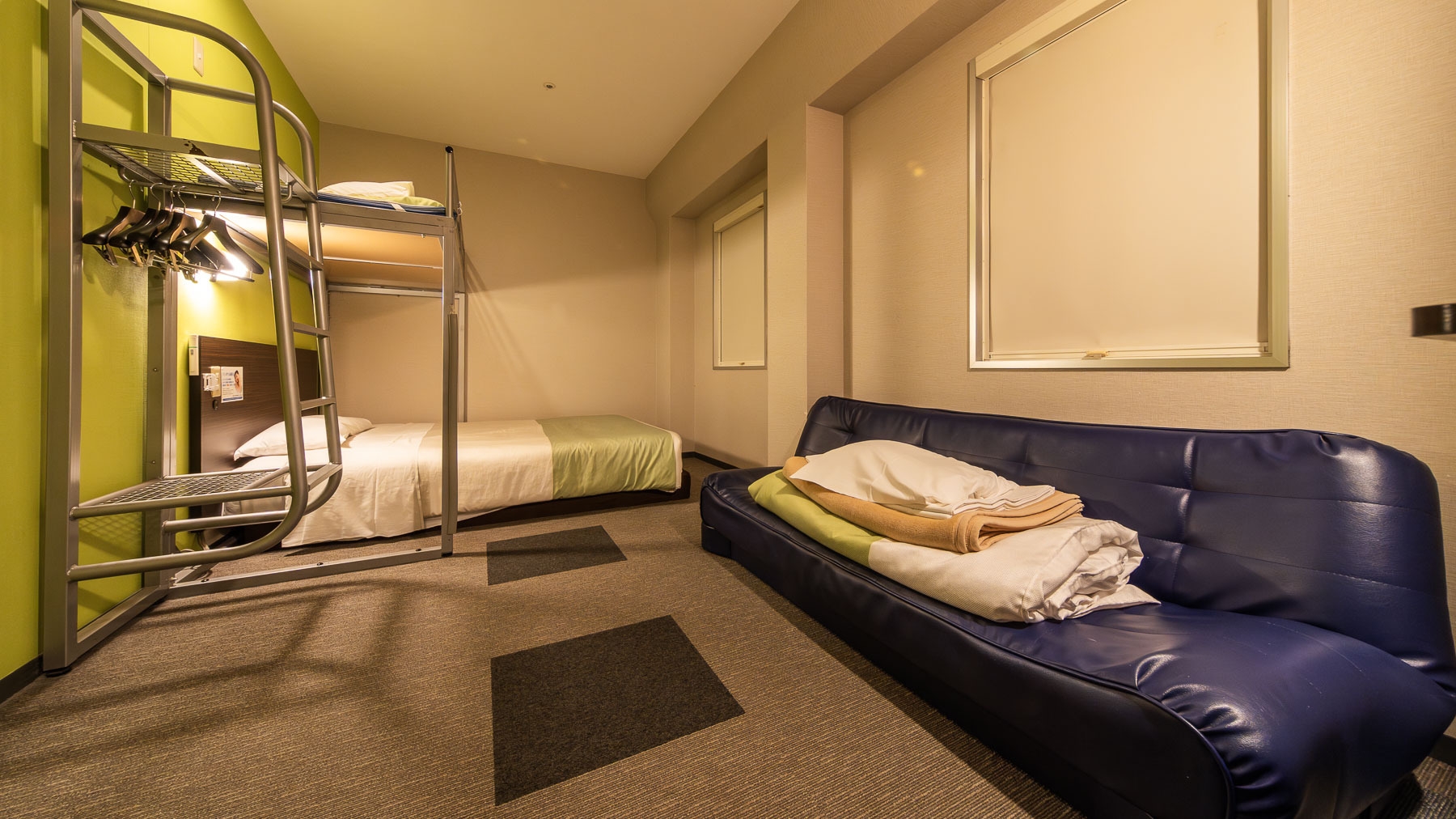 【最大4名利用可】ワイドベッド1台+ロフトベッド付+ソファベッドが付いたお部屋です。 ご家族にお勧めです。