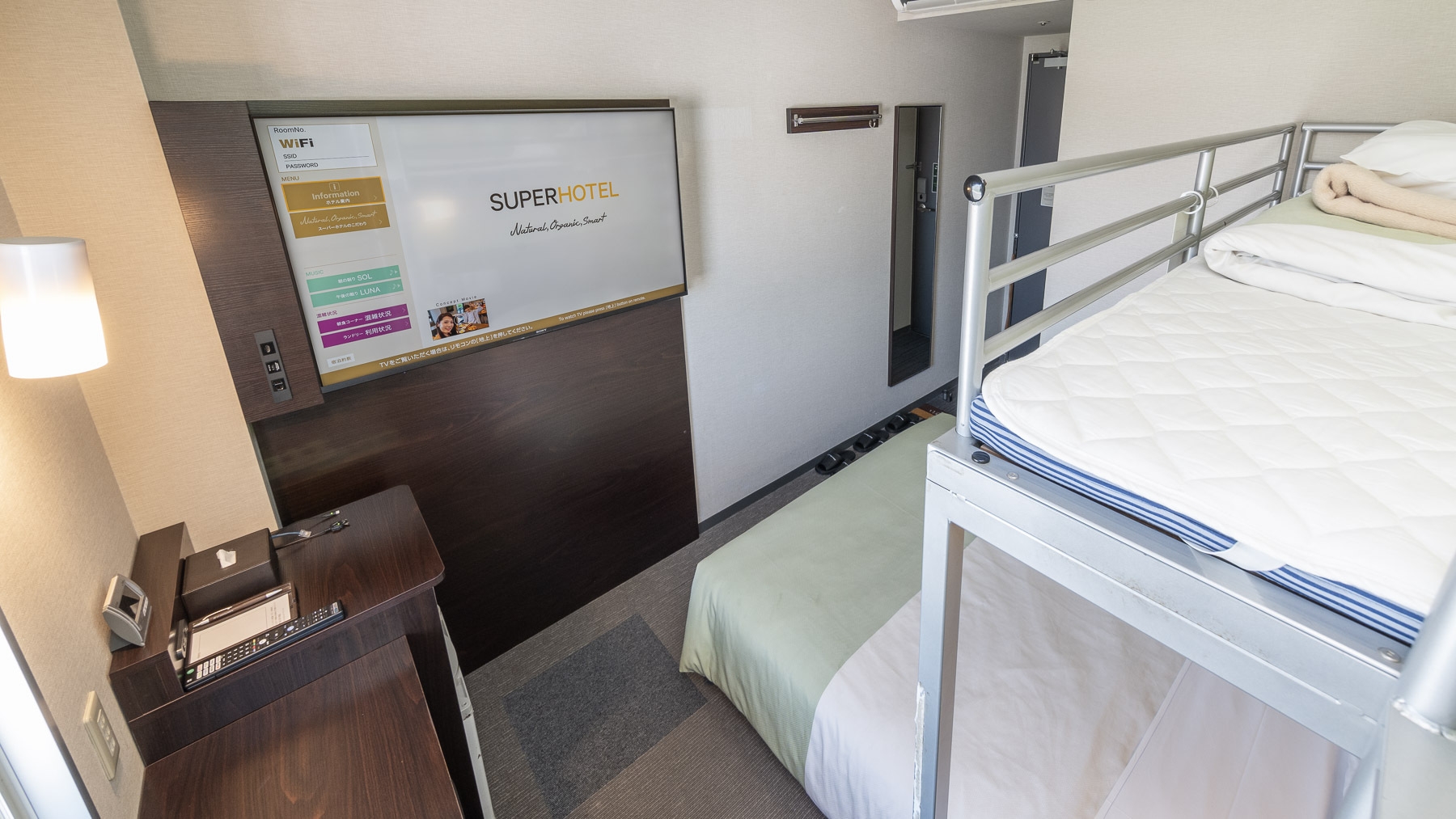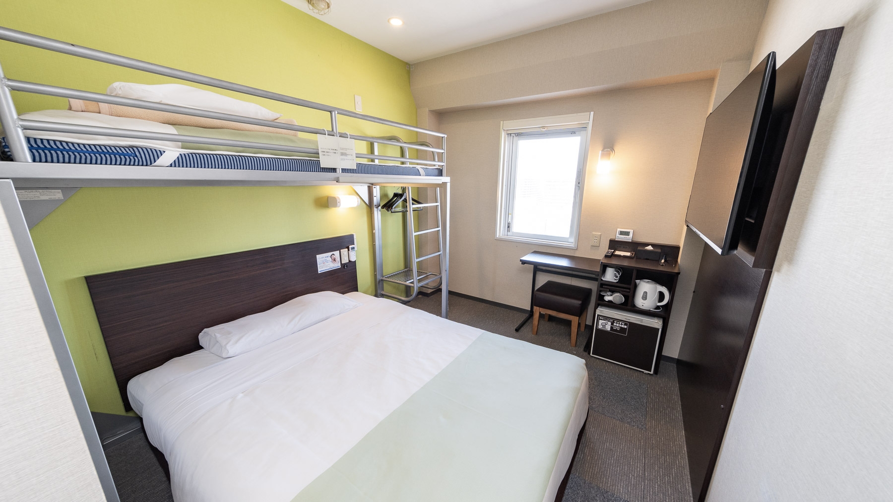 150cm幅のワイドベッド1台+ロフトベッド付きのお部屋です。 お子様に大人気♪ご家族にお勧めです。