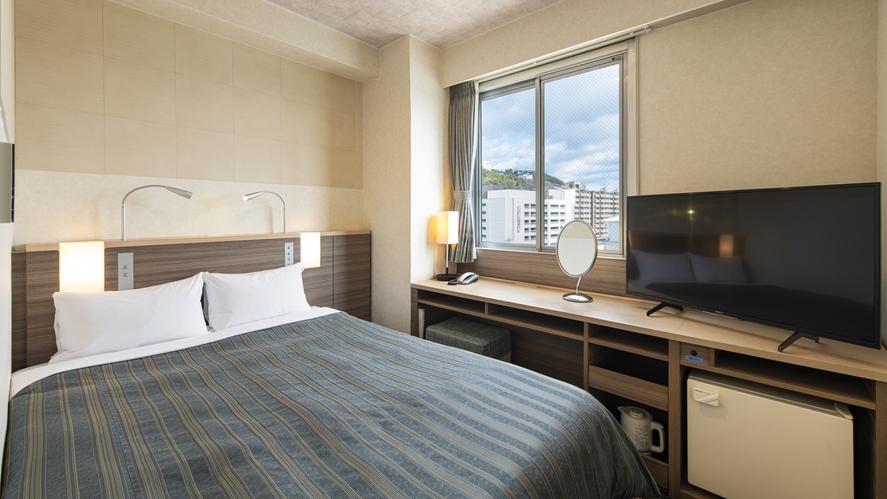 <お部屋の窓から尾道水道を一望>ビジネスや一人旅、サイクリストにオススメ!ベッドの脚が高く床との間にスペースがあるので、スーツケースを収納することが可能です。