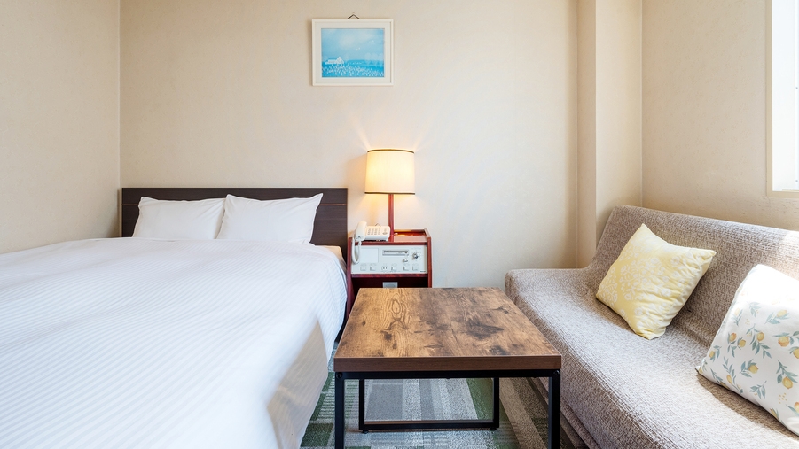 ダブルベッド(幅140cm)×1台・エキストラベッド(幅100cm)×1台・歯ブラシ・剃刀・ブラシ・靴磨き・冷蔵庫(空)・金庫・電話・ポット・緑茶・水割りセット