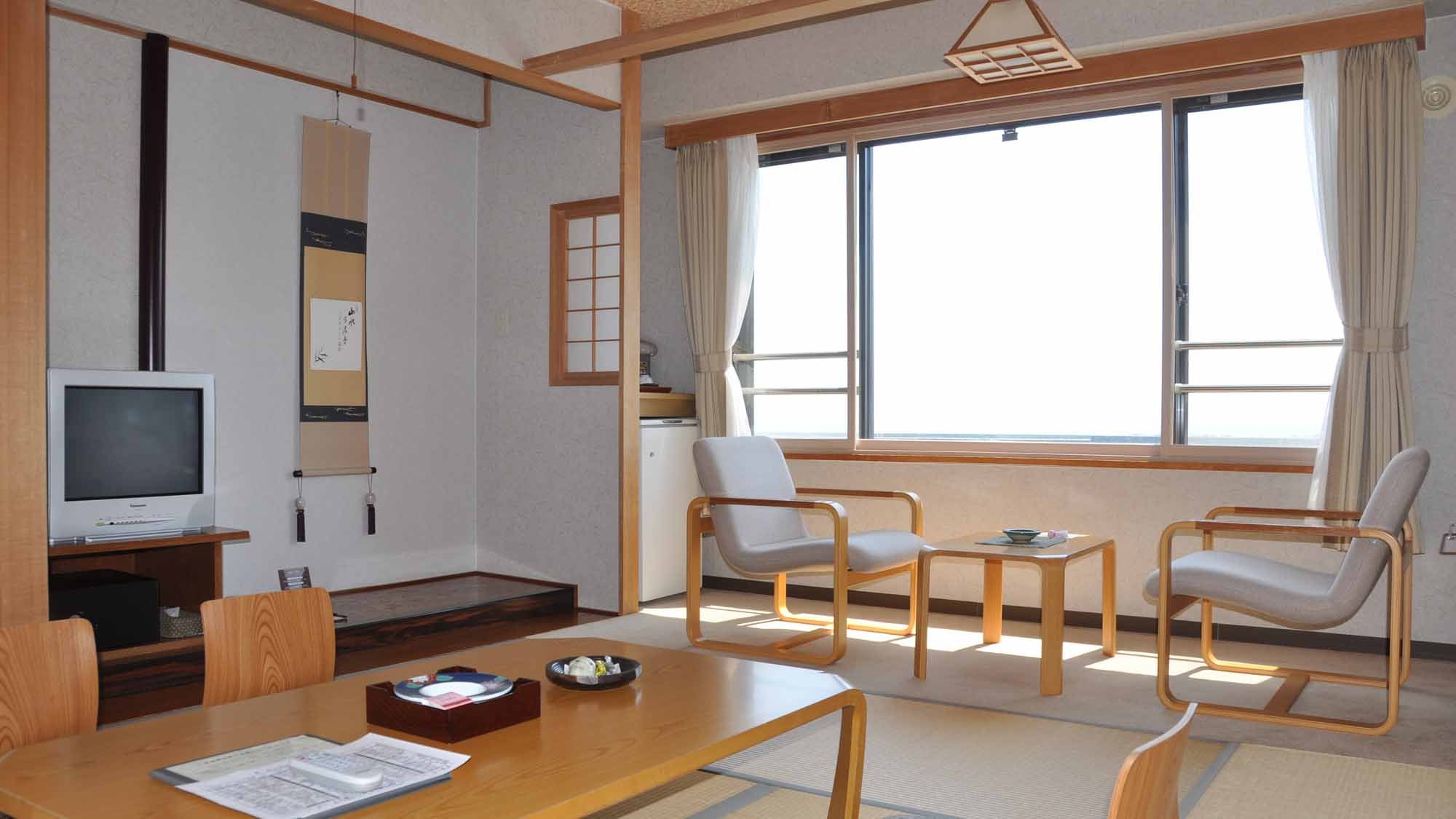 海と利尻山(富士)を一望!8畳に広縁をプラスした落ち着いた雰囲気の和室です。
