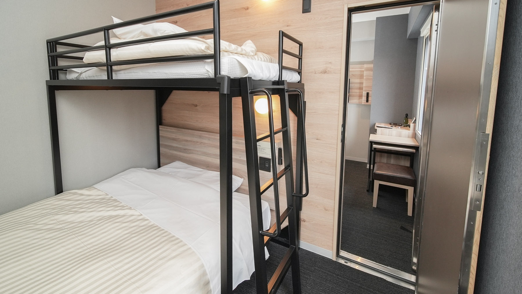 ダブルサイズのワイドベッドとお子様に人気のロフトベッド付のスーパールームが2部屋繋がった【スーパールームコネクティング】です。