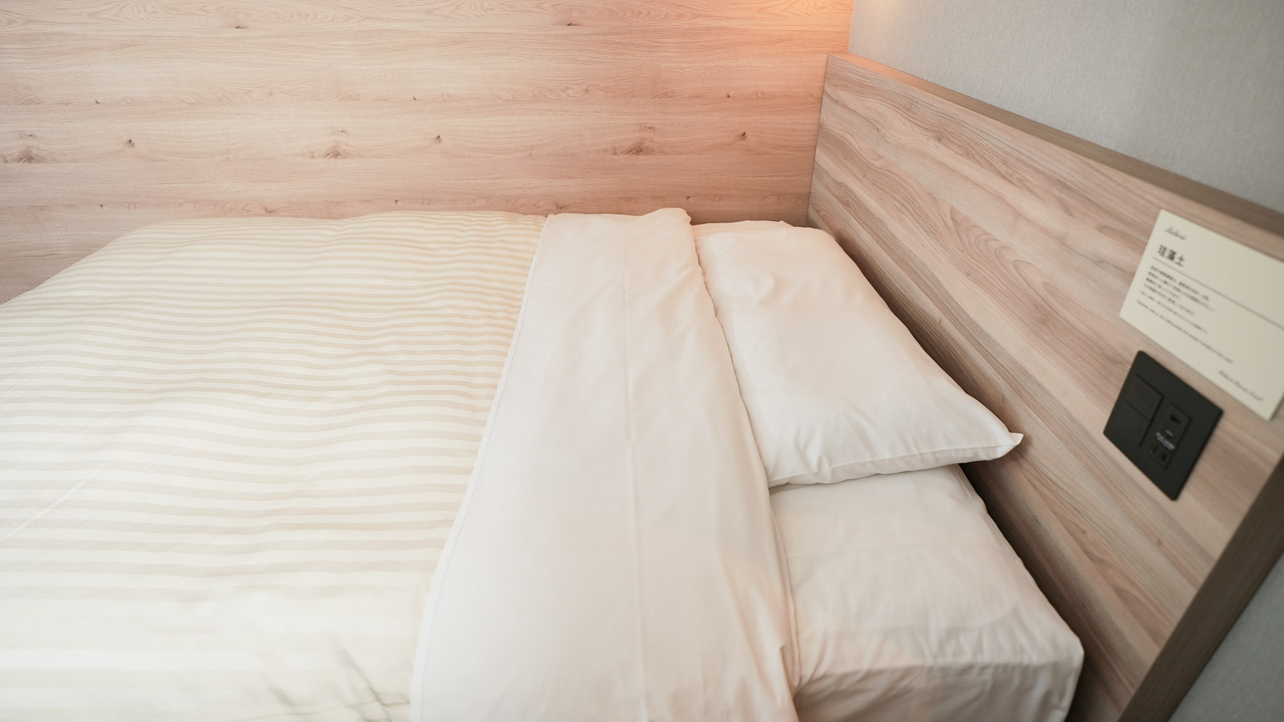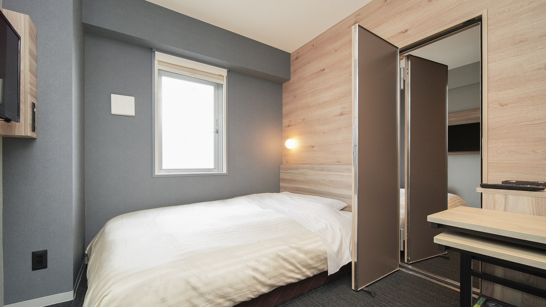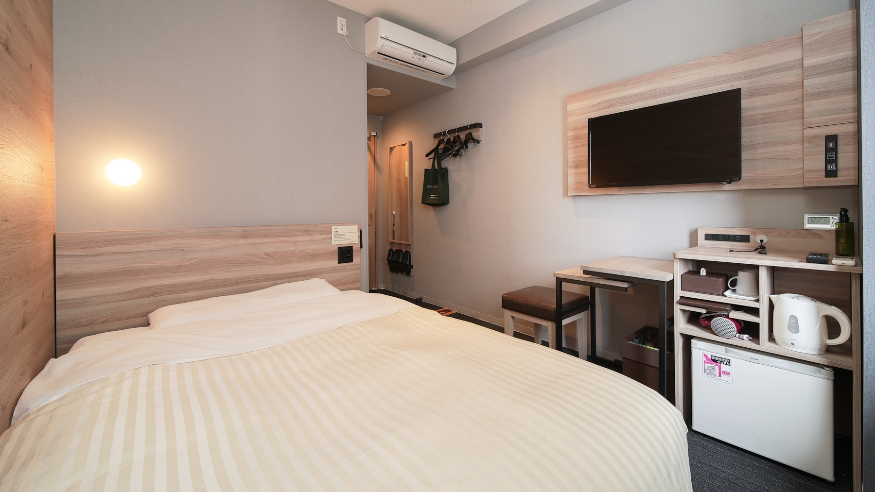 スーパーホテルで最もスタンダードなお部屋である【スタンダードルーム】です。 150cm幅のダブルサイズのワイドベッドでぐっすりお休み下さい。