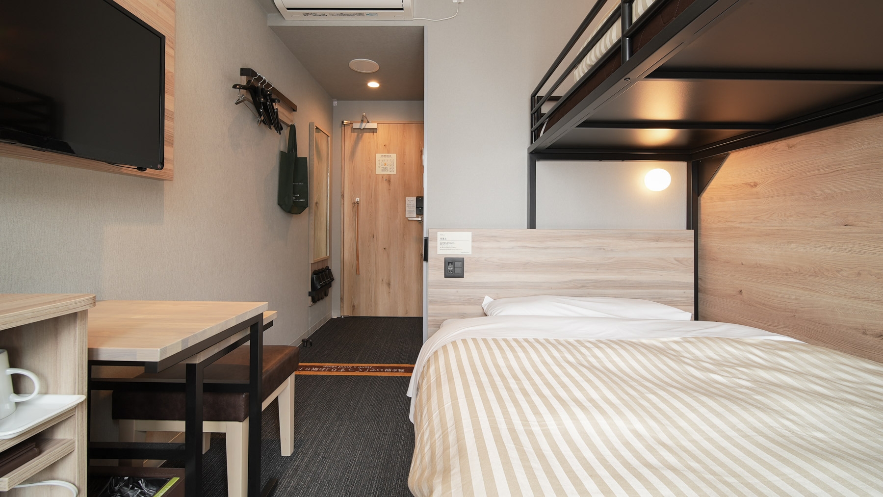 ダブルサイズのワイドベッドとお子様に人気のロフトベッド付の【スーパールーム】です。 ご家族にお勧めです。
