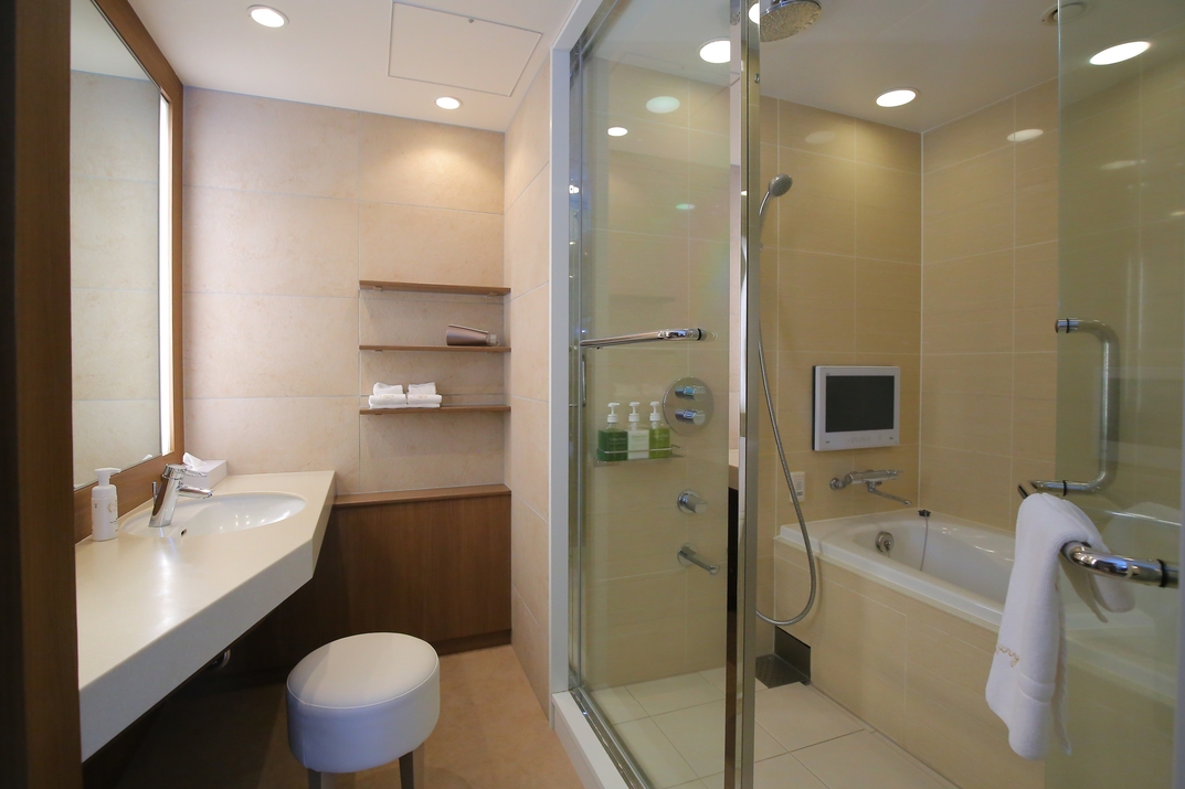 【全室禁煙・Wi-Fi完備】120cm幅のシングルベッド2台、バストイレセパレートタイプ(浴室テレビ付)炭酸泉付き 窓から丹沢連峰や電車が見えます!