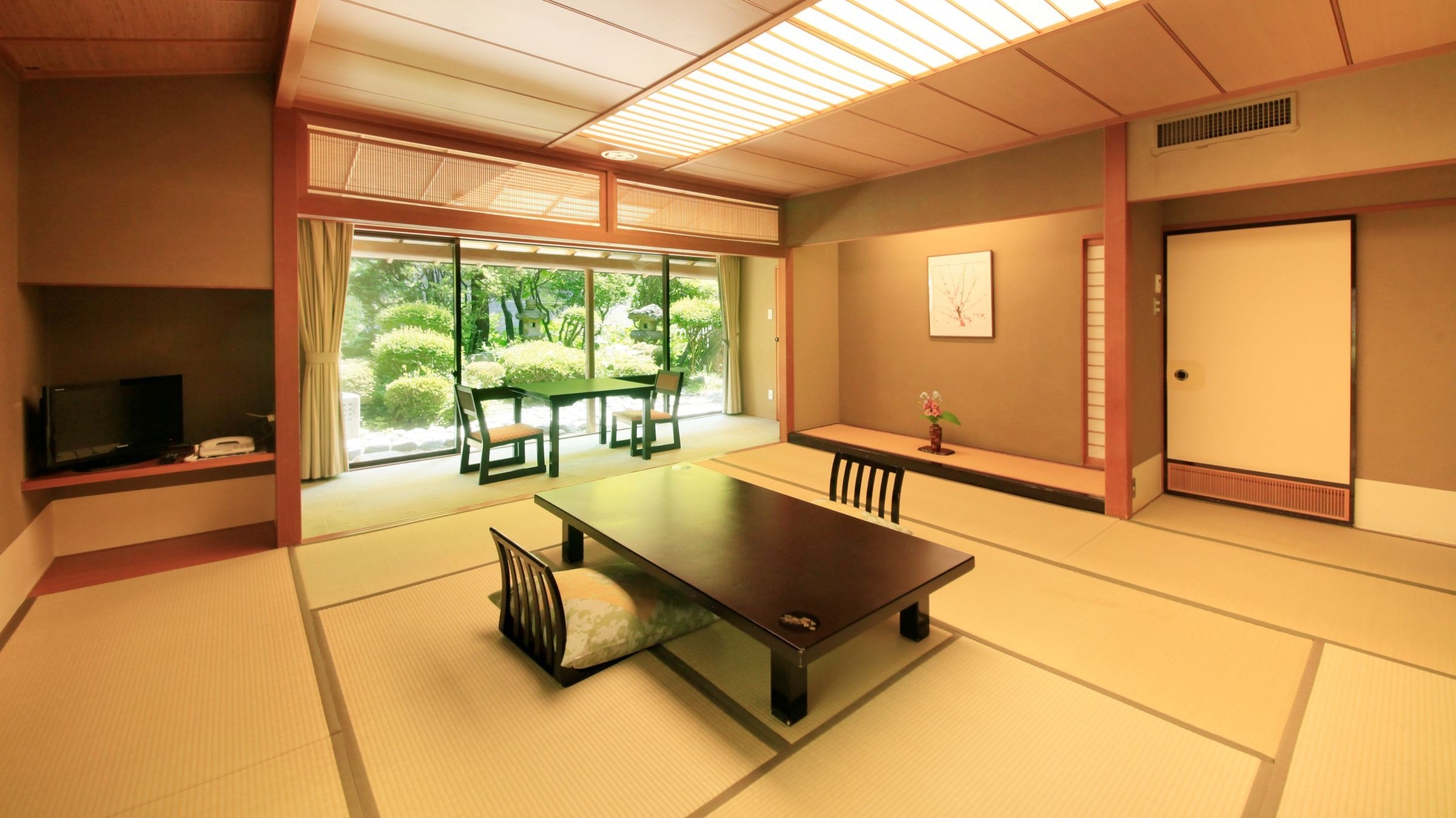 【源泉掛け流し露天風呂付和洋室(和室12.5畳+ツインルーム)】、四季亭で一番広いお部屋です。