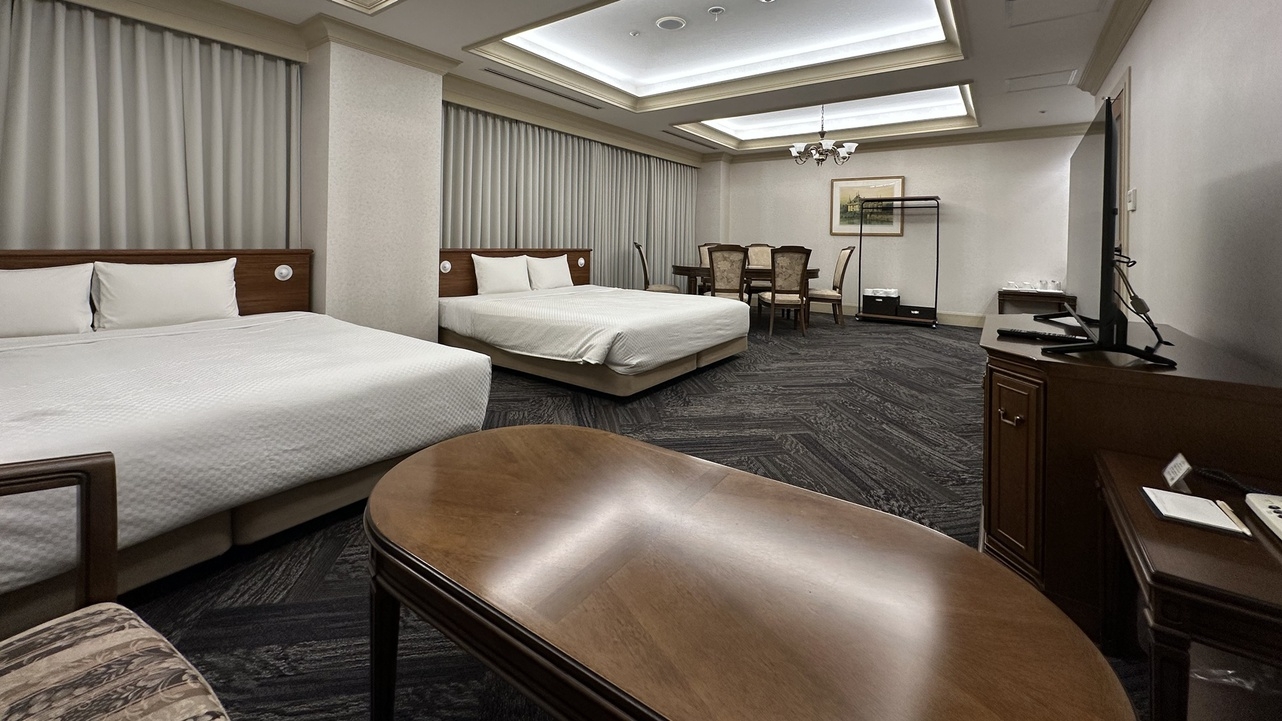 2025年4月リニューアル!18畳のゆったり和洋室。2名様(2台ベッド)はもちろんグループ・ご家族でのご利用可能※無料Wi-Fi完備※YouTubeTV対応