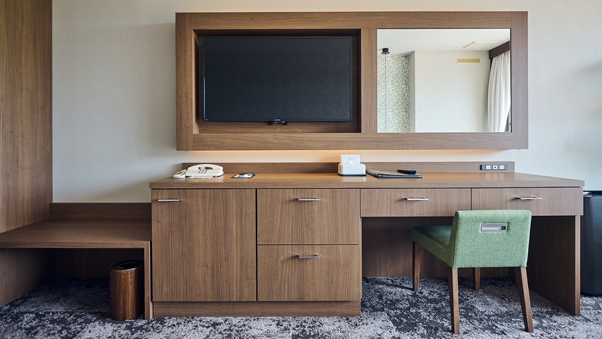 モダンなファブリックとダークブラウンのインテリアで本館4階にしつらえたダブルルーム。