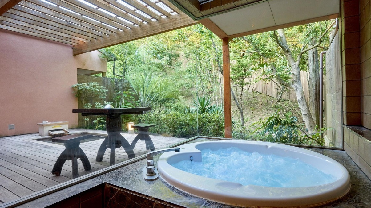 全室露天風呂・室内ジャグジー付で贅沢な時間をお過ごしください♪*全室禁煙となります。喫煙される場合は露天スペースをご利用くださいませ。