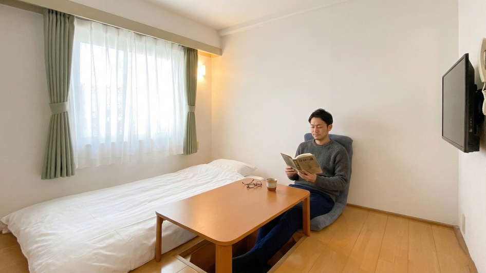 喫煙 靴を脱いで過ご素足でくつろげるフラットなお部屋です。フローリングに柔らかな布団、動画も楽しめるスマートTVで、心地よいステイをお楽しみください。