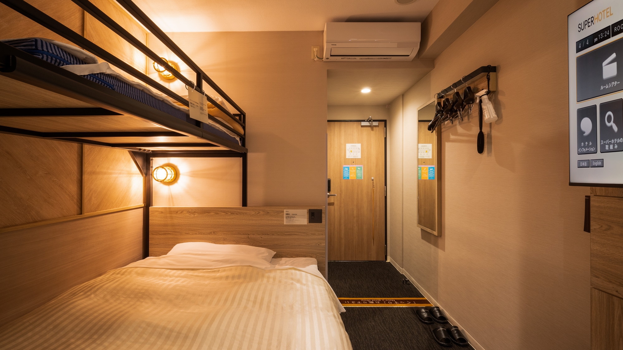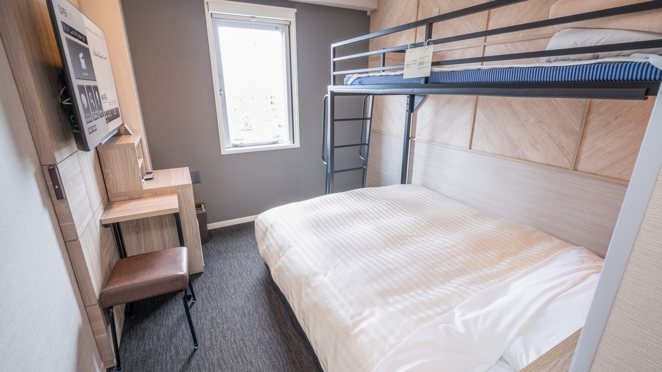 ダブルサイズのワイドベッドとお子様に人気のロフトベッド付の【スーパールーム】です。 ご家族にお勧めです。
