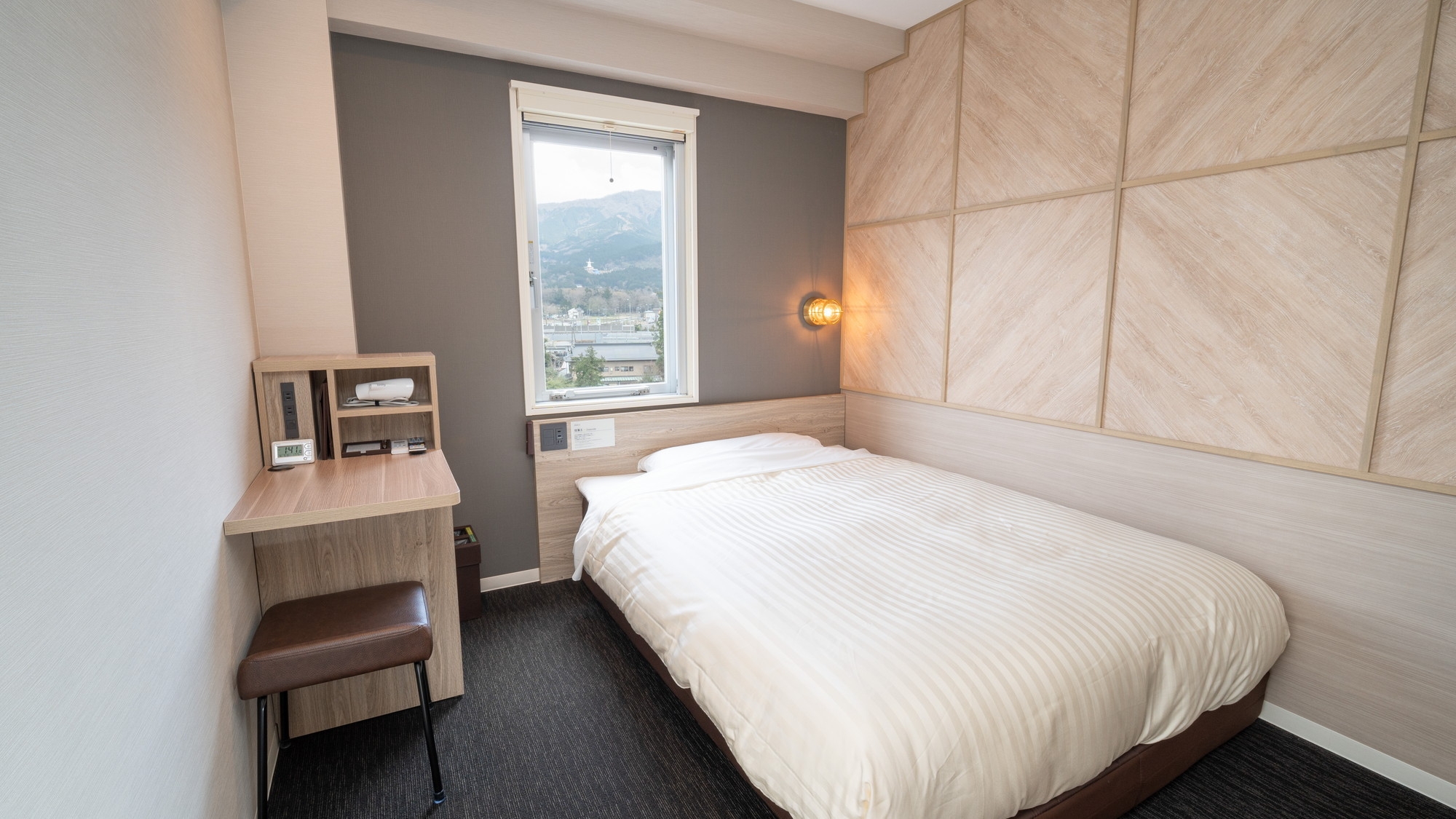 150cm幅のワイドベッド+広々デスクの【エクストラルーム】です。 広々デスクで仕事や作業がしやすいお部屋です。
