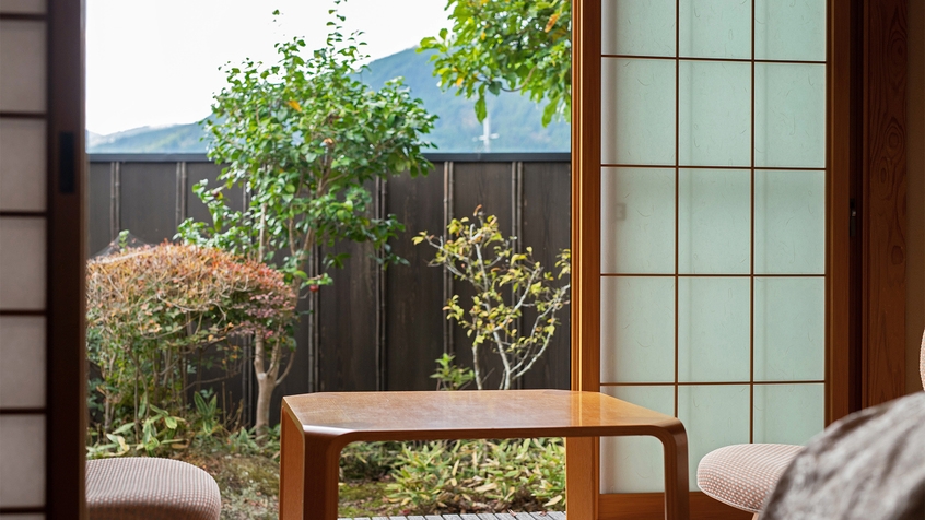 和室10畳に開放できる大きな窓のついた温泉付きのお部屋です。