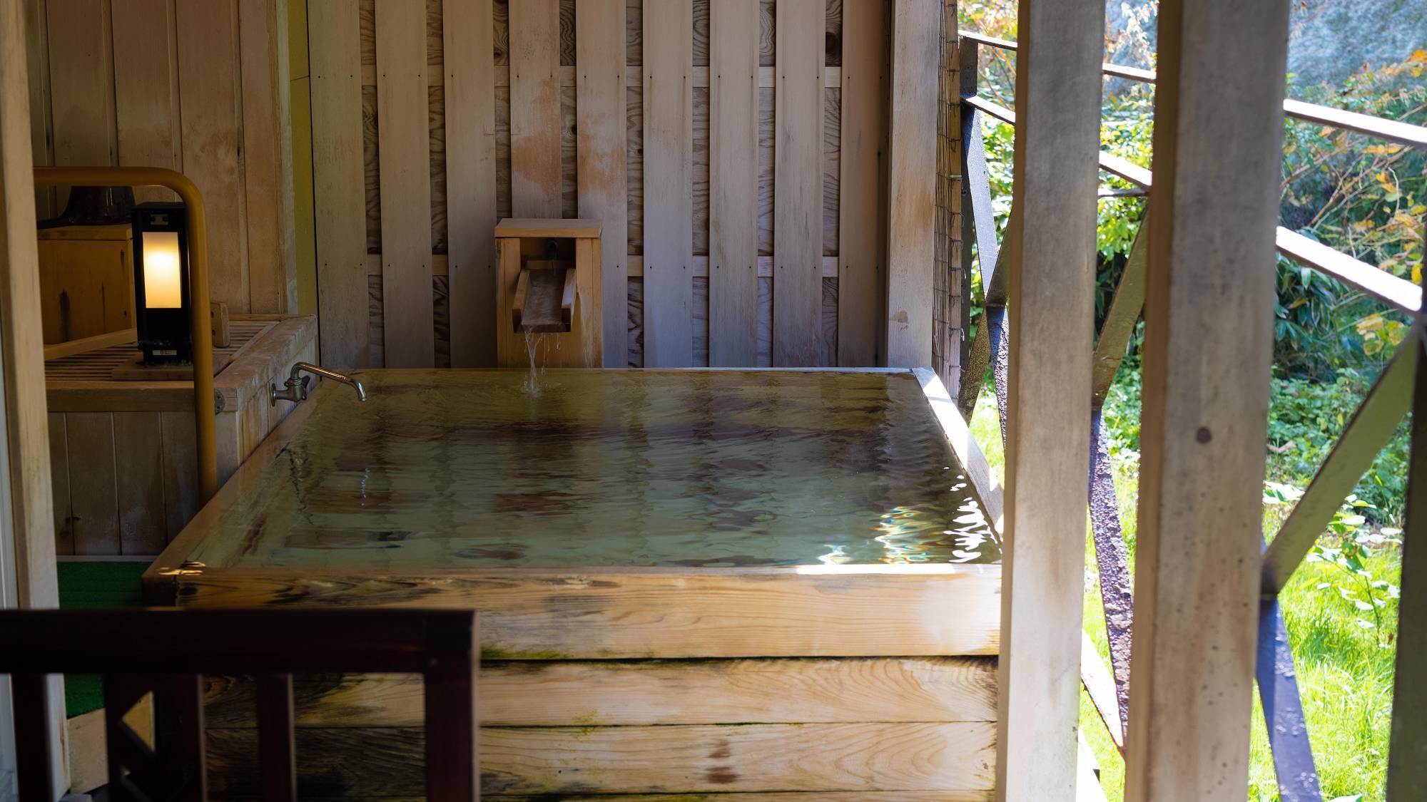 2名様専用のコンセプトで造った露天風呂付客室。源泉掛け流しの温泉を心ゆくまでお楽しみください。※この客室タイプは全室2階にあります。
