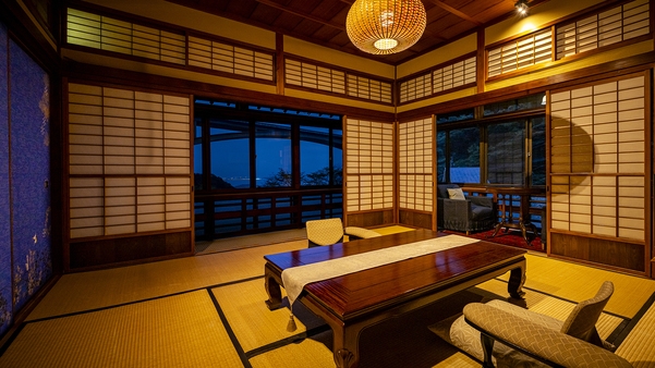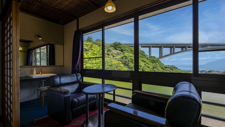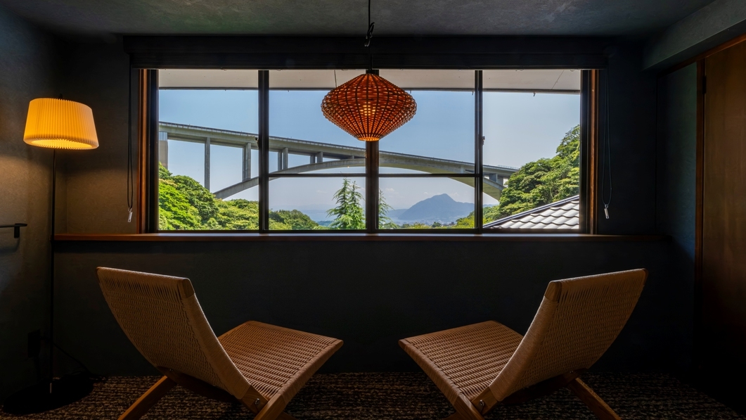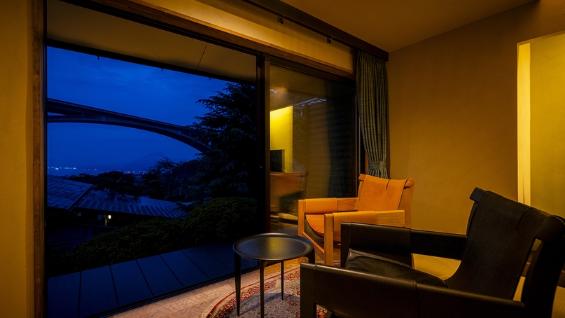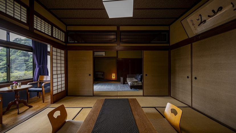 2025年7月に改装された、和室6畳とベッドルーム6畳を備えた和洋室です。 内湯付きで、ご滞在の間はお好きな時間に源泉掛け流しの温泉を楽しんでいただけます。