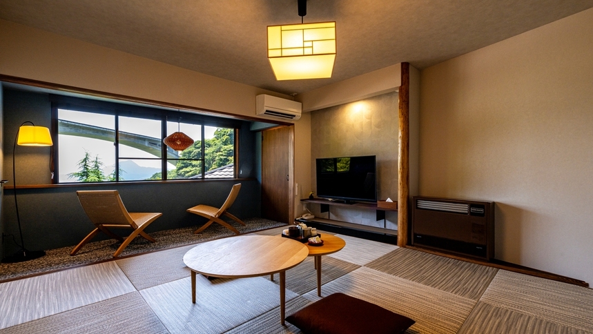 2025年5月に改装いたしました。 広々とした畳敷きの室内には、ローテーブルと座布団を備えたくつろぎスペースがあり、ご家族やご友人との団らんにもぴったりです。