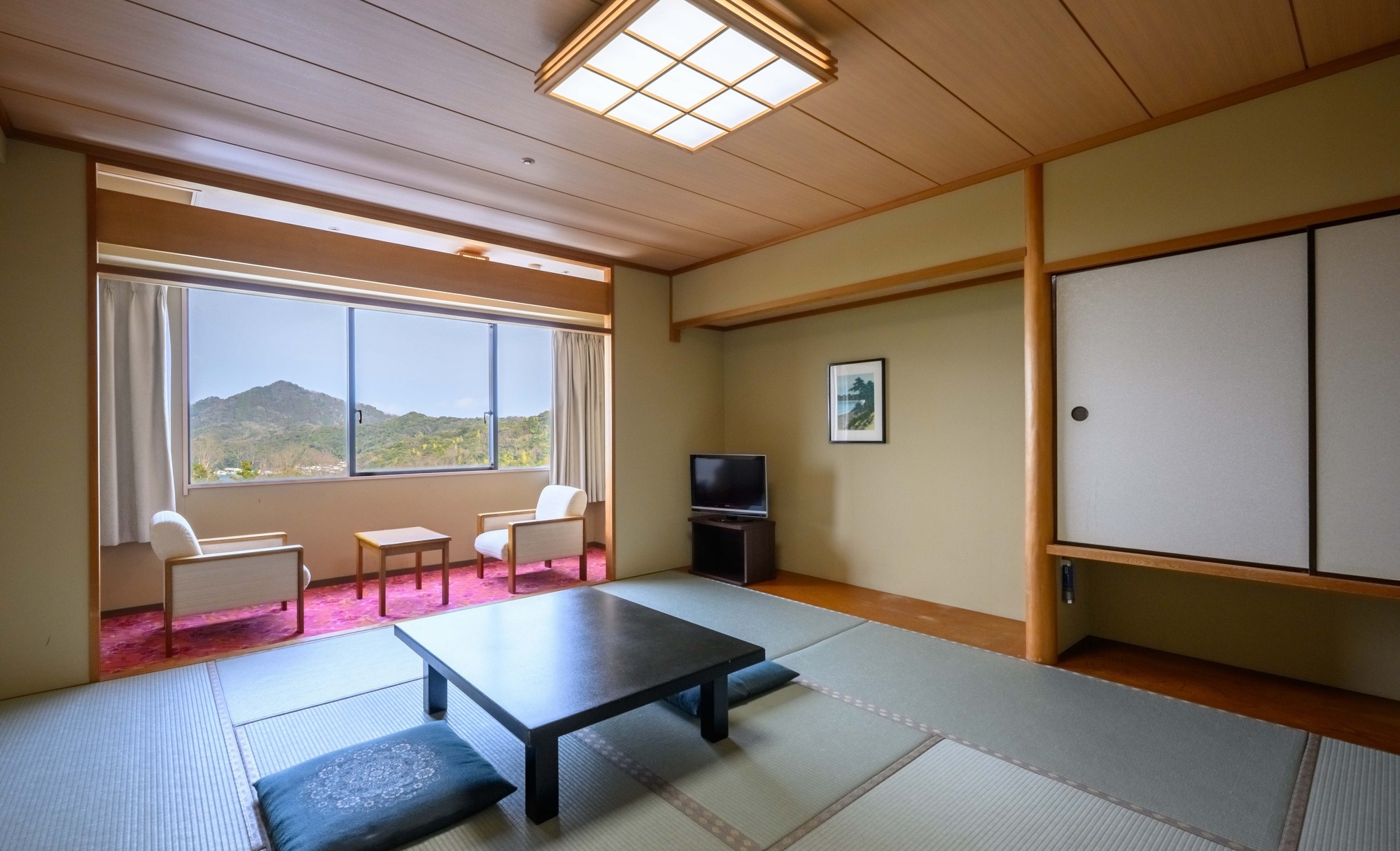 隣り合う和室2和室、各部屋:布団4組(布団敷セルフ)、TV、Wi-Fi、ケトル、冷蔵庫、バスタブとシャワー、セーフティボックス、布団不要の未就学児は3人まで。