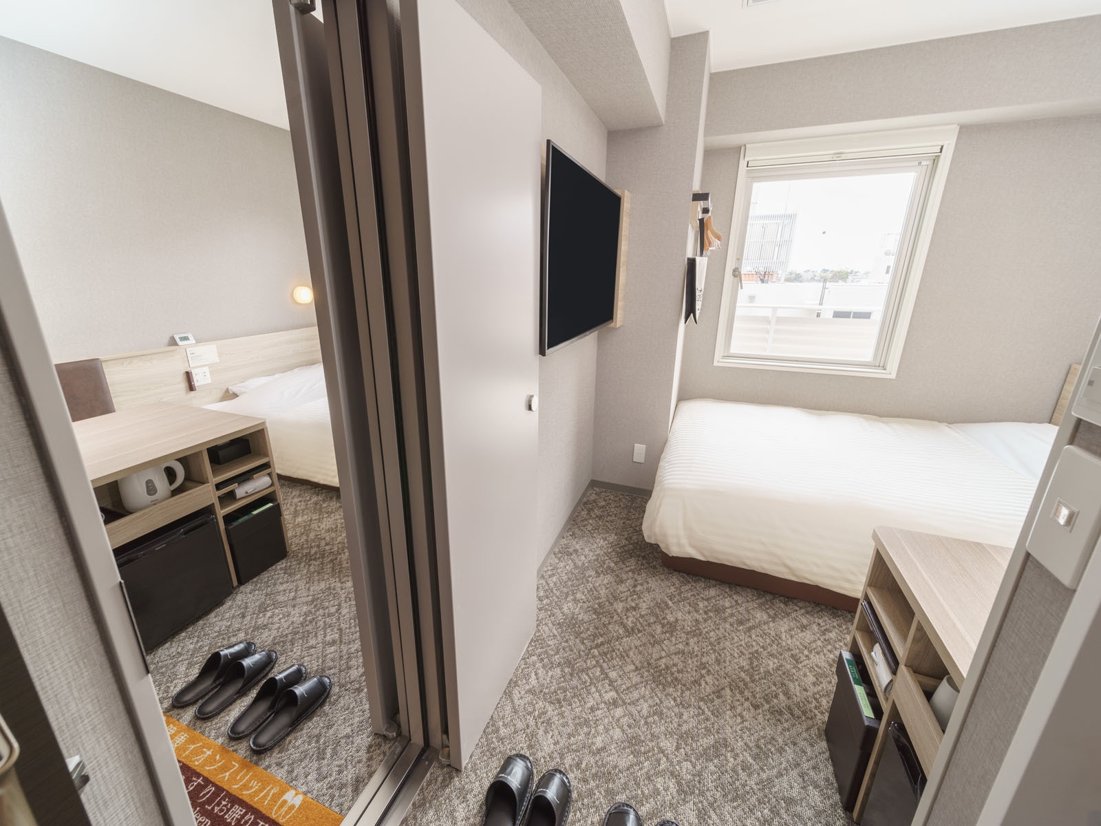 スーパーホテルで最もスタンダードなお部屋である【スタンダードルーム】です。 150cm幅のダブルサイズのワイドベッドでぐっすりお休み下さい。