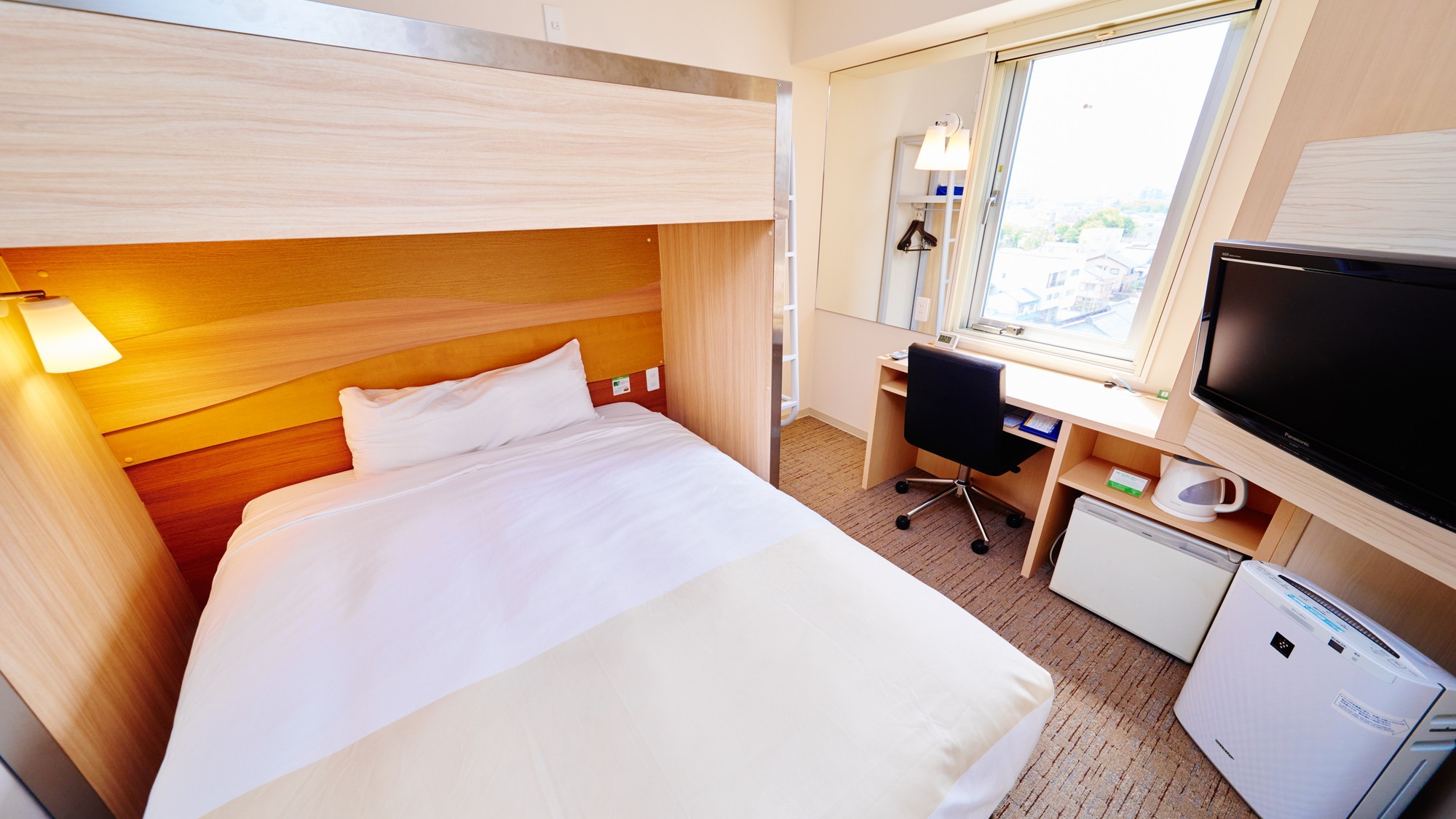 最もスタンダードなお部屋です。150cm幅のダブルサイズのワイドベッドでぐっすりお休み下さい。※予約状況によりスーパールームに振替させて頂く場合がございます。