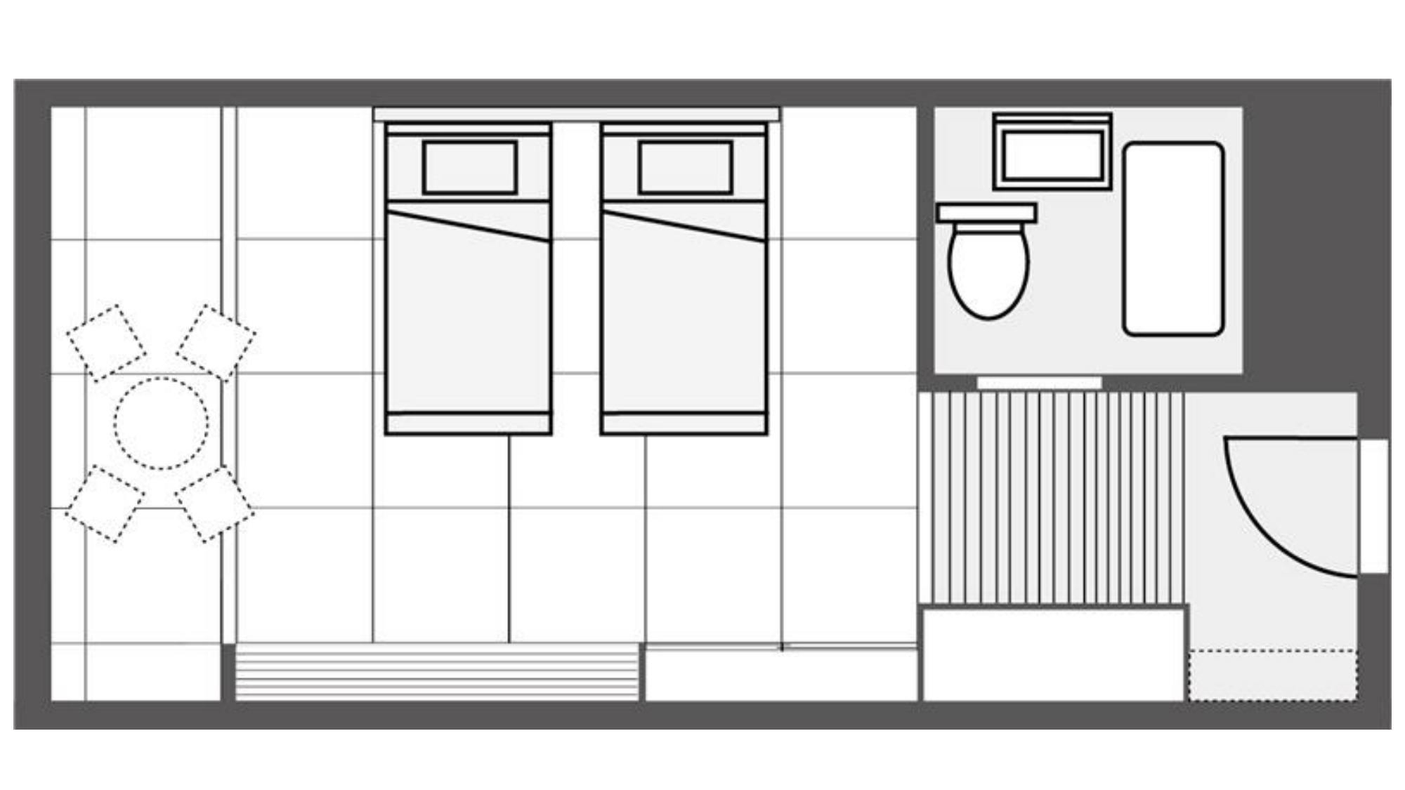 36平米、シングルベッド2台、エキストラベッド1台、TV、Wi-Fi、ケトル、冷蔵庫、バスタブとシャワー、金庫を完備。