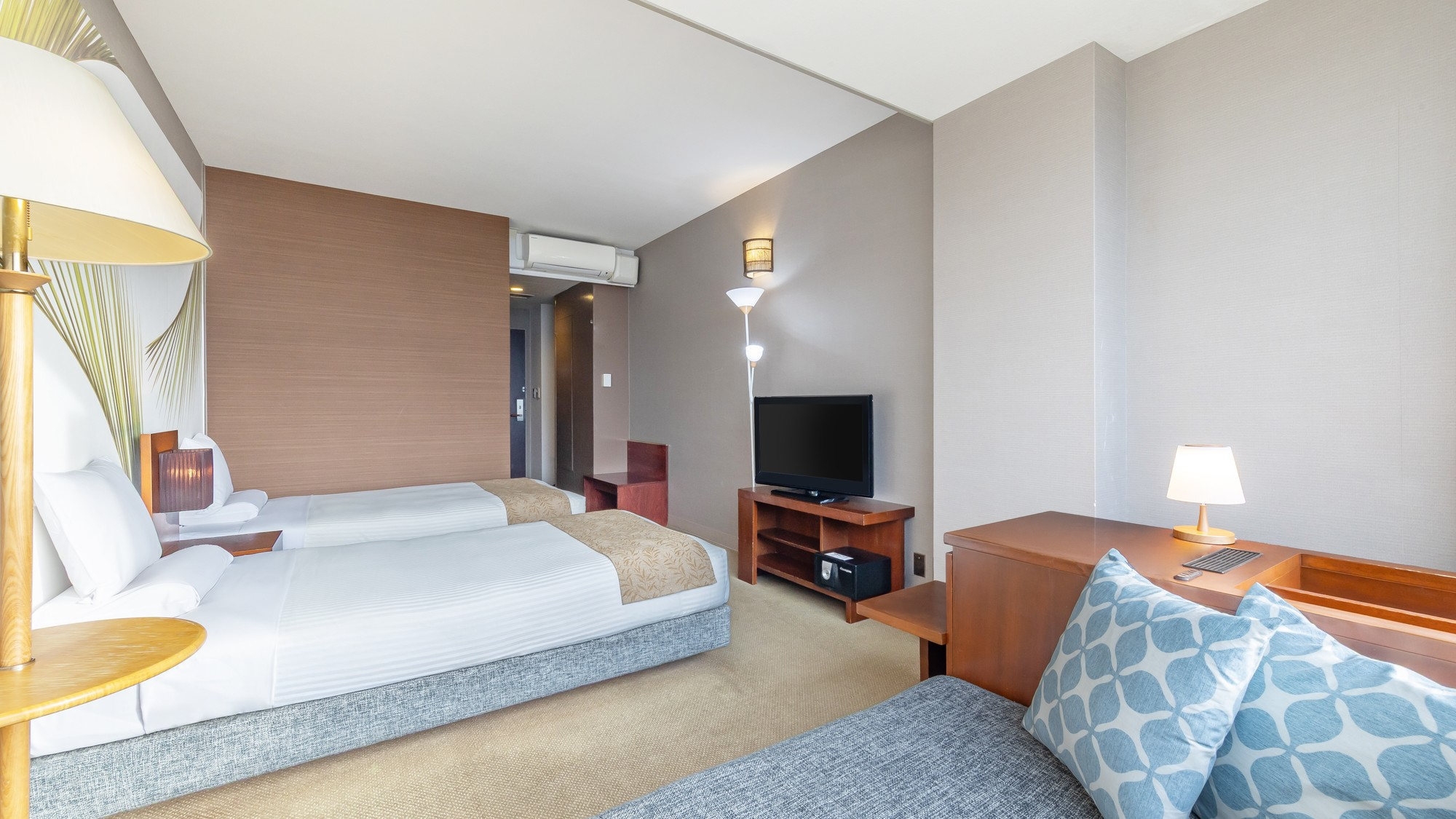 シングルベッド1台、3名でご利用いただけるハリウッドツインベッドをご用意したお部屋です。エキストラベッド1台追加可能で、最大大人5名様までご利用いただけます。