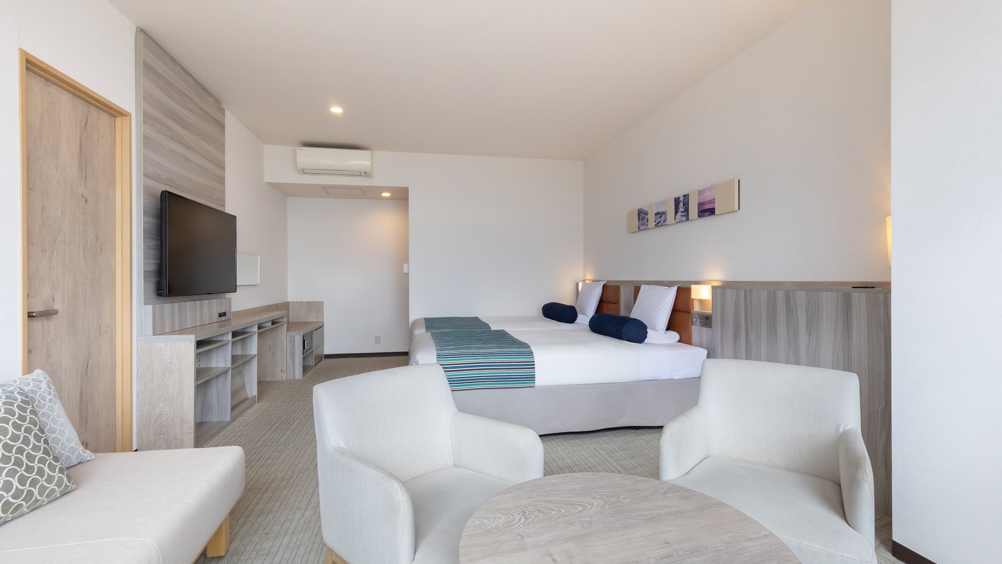 わんちゃんとお泊りのできるお部屋です。2ベッド+ソファーベッドで3名様までお泊りいただけます。専用テラス付き。シャワーブース付き。/禁煙