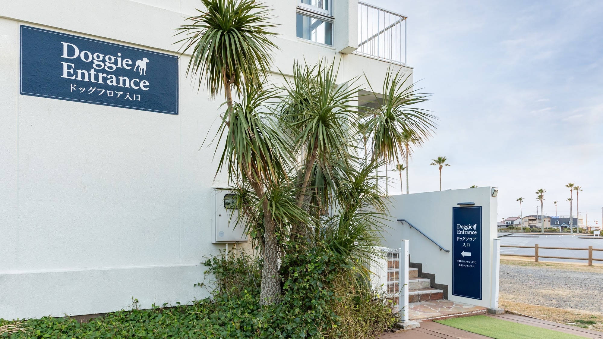 わんちゃんとお泊りのできるお部屋です。2階客室。お部屋の出入り口までは階段での利用となります。お部屋にバスルームはございません。大浴場をご利用ください。喫煙可