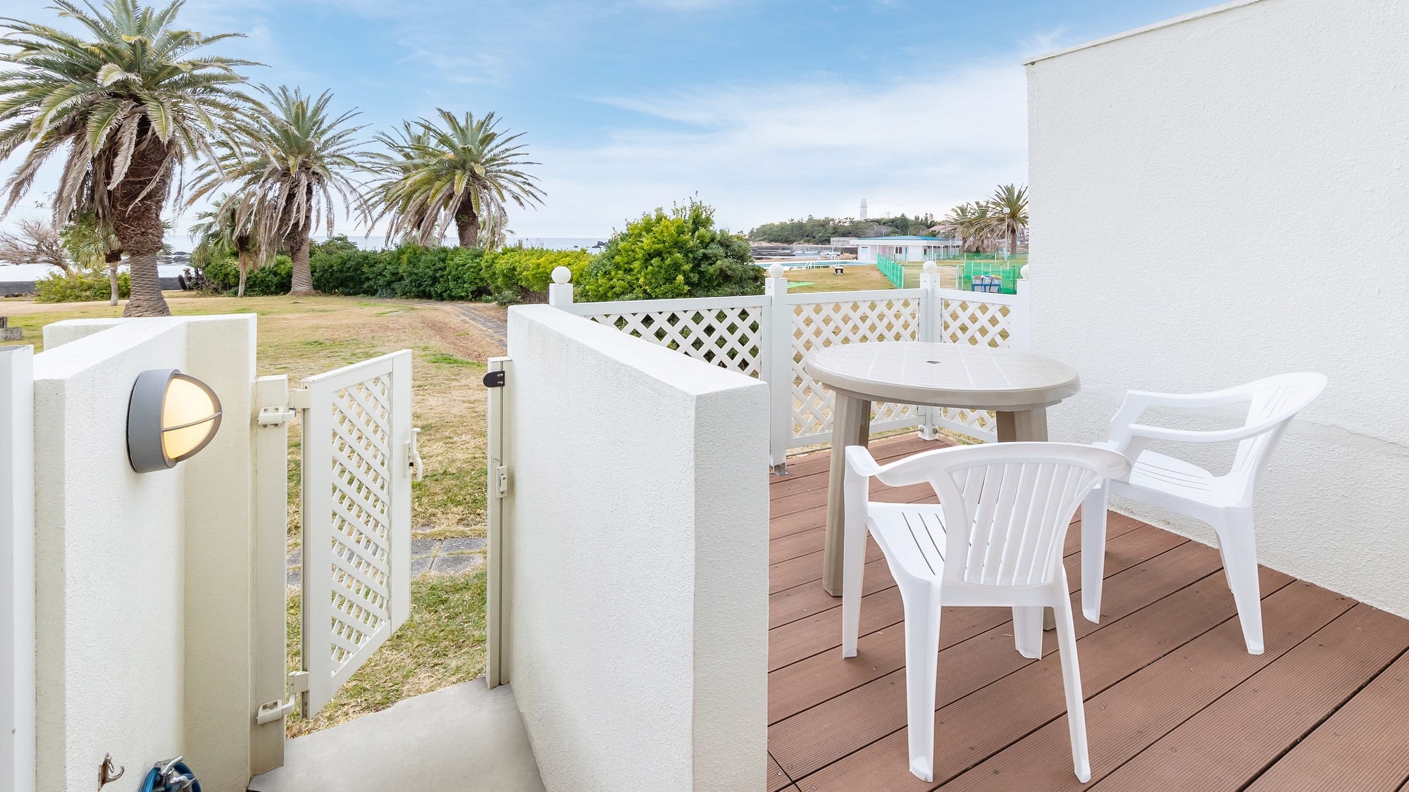 わんちゃんとお泊りのできるお部屋です。専用テラス付き。お部屋にバスルームはございません。大浴場をご利用ください。禁煙