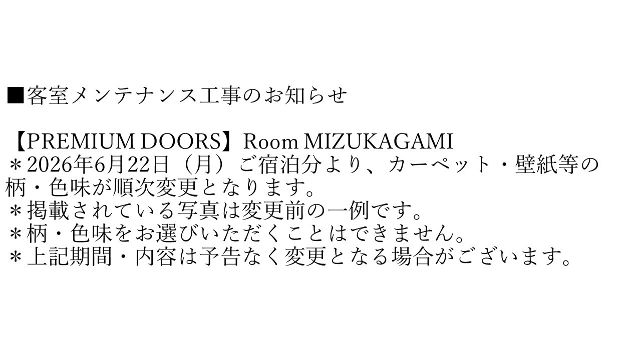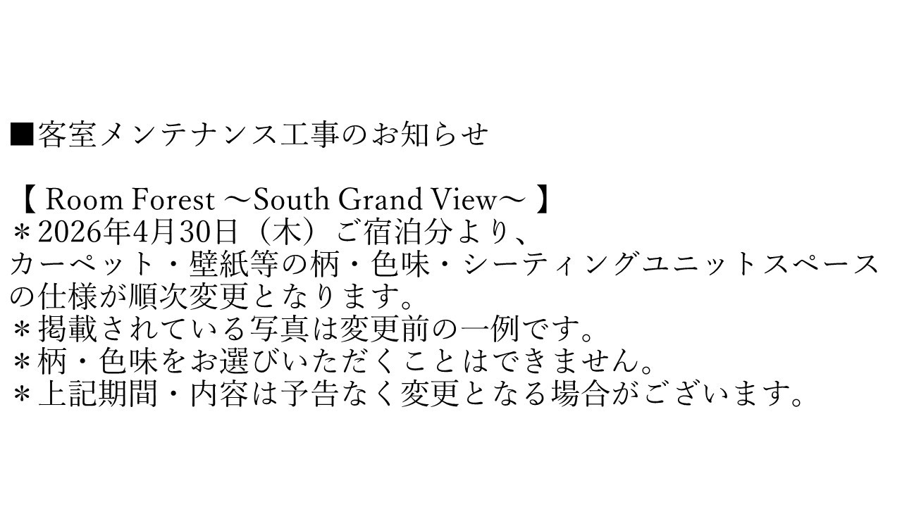 ・一部客室のみ有料人数1名様につき、未就学のお子様1名様まで添い寝が可能でございます。
