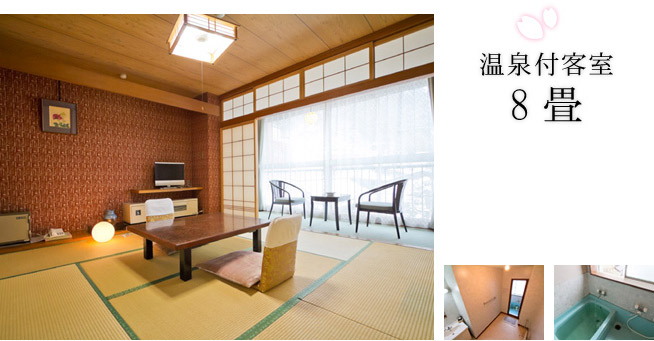 たまには一人旅で心も体ものんびりと。 8畳の和室に、専用内風呂がついたお部屋。 | ![]() |