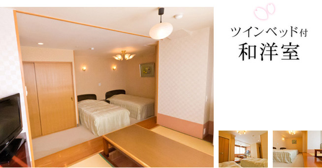 温泉付き客室や、大人数で泊まれる客室、ベッドのある客室…