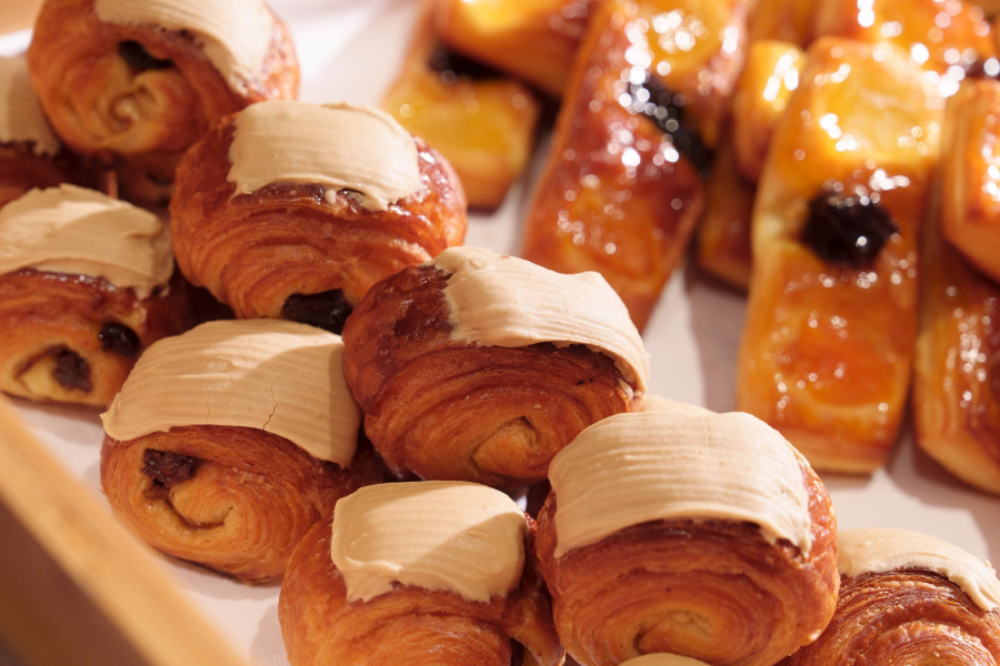 ホテル内のベーカリーで丁寧に焼き上げるパン。クロワッサンやデニッシュなど、色々な種類を召し上がっていただきたいので小さめのサイズにしました。コーヒーや牛乳とともにホテルメイドのパンをお楽しみください。