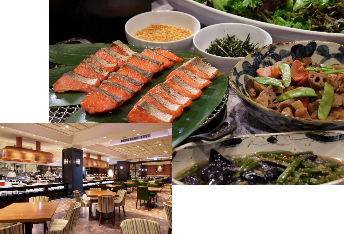この他にも種類豊富な前菜、肉や魚料理、和のお惣菜、季節に合わせた限定メニューなど、どなたでもお楽しみいただける多彩なメニューをご用意。新鮮なサラダや温野菜、フルーツやヨーグルトなど、爽やかな朝にぴったりの健康志向の料理も充実しています。