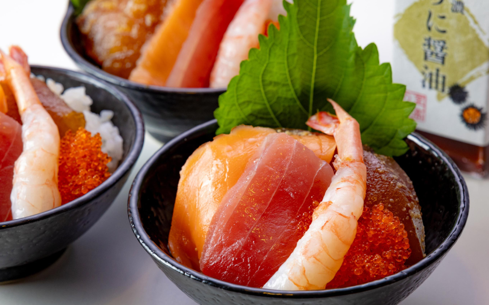 大人気!シェフが目の前で盛り付ける海鮮丼は、新鮮な海の幸をご自由にお選びいただけます。