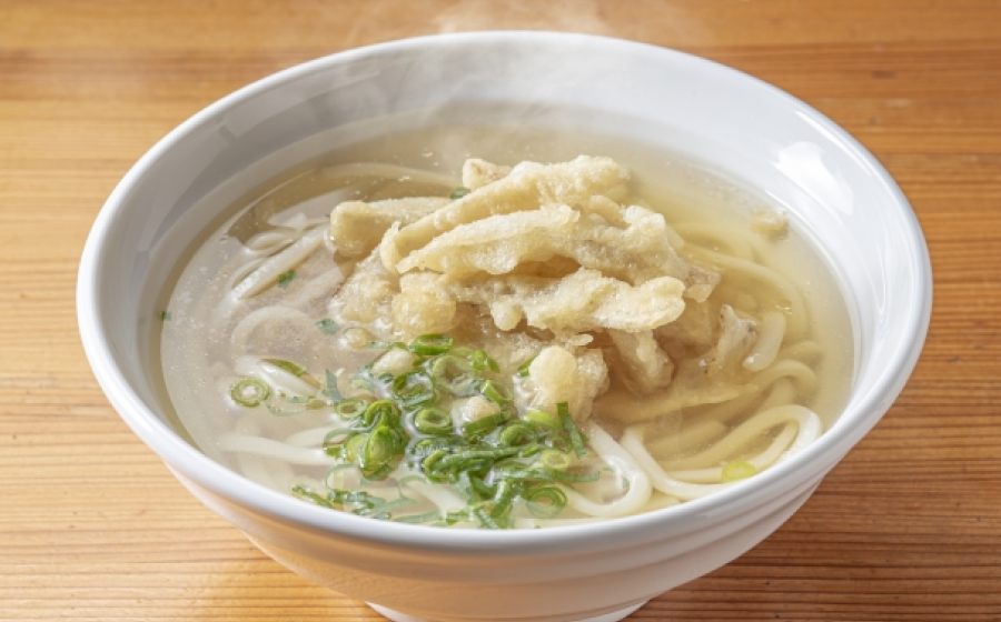福岡のソウルフードともいえる「ごぼ天うどん」は、柔らかいうどんに香ばしいごぼうの天ぷらがのった人気メニュー。優しい味わいの出汁とともに、心も体もほっとするようなひとときを楽しめます。短時間で気軽に楽しめる点も魅力です。